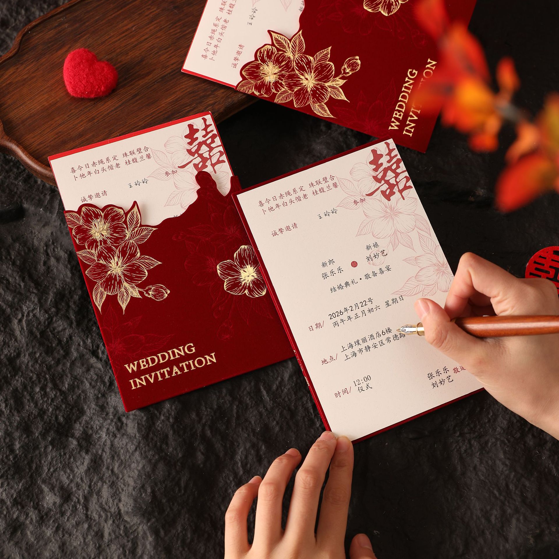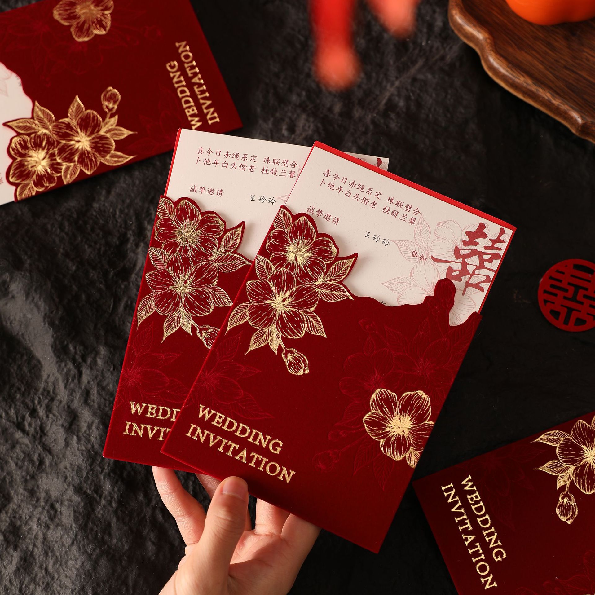 絲絨結婚請柬 婚禮喜帖邀請函中國風婚宴請?zhí)?/h1>