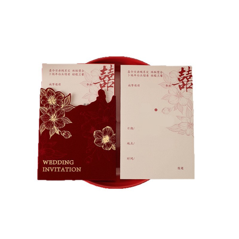 結婚 >結婚用品 >請柬 >絲絨結婚請柬 婚禮喜帖邀請函中國風婚宴請?zhí)?/div>
