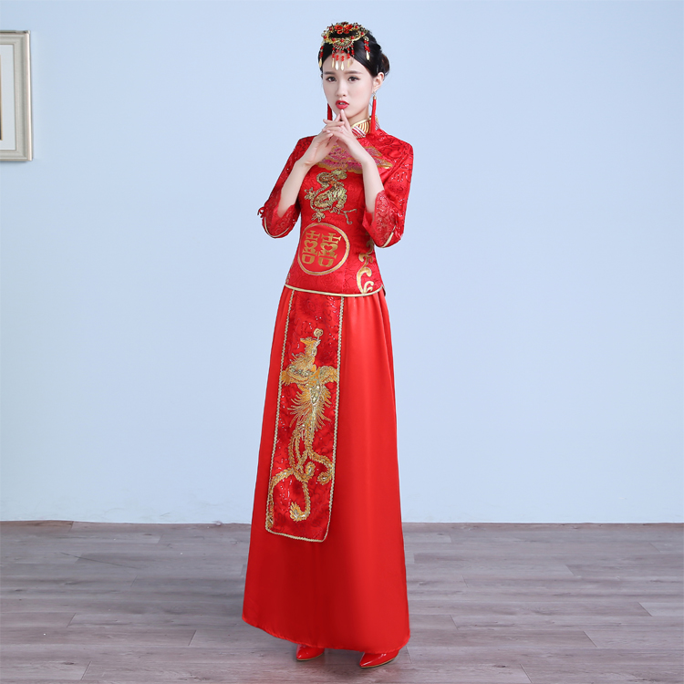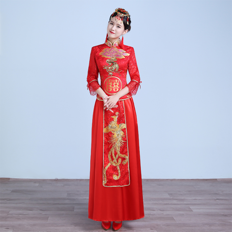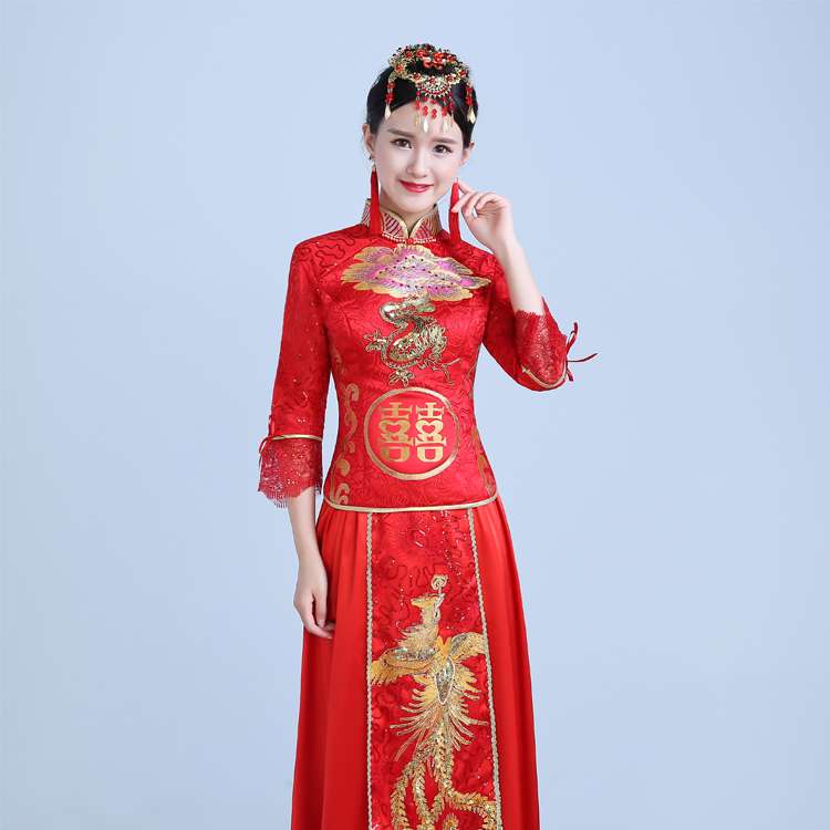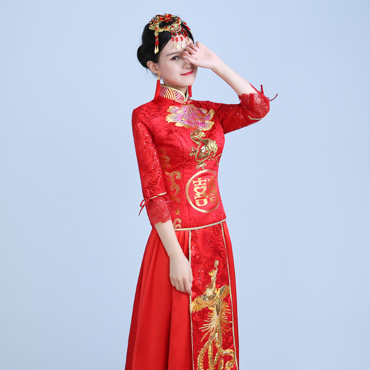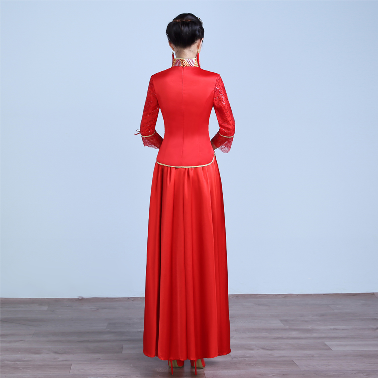 • 2016夏新款紅色禮服長(zhǎng)款修身旗袍敬酒服晚禮服 主持演出服