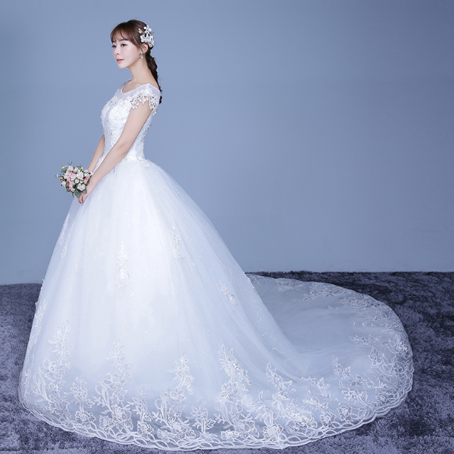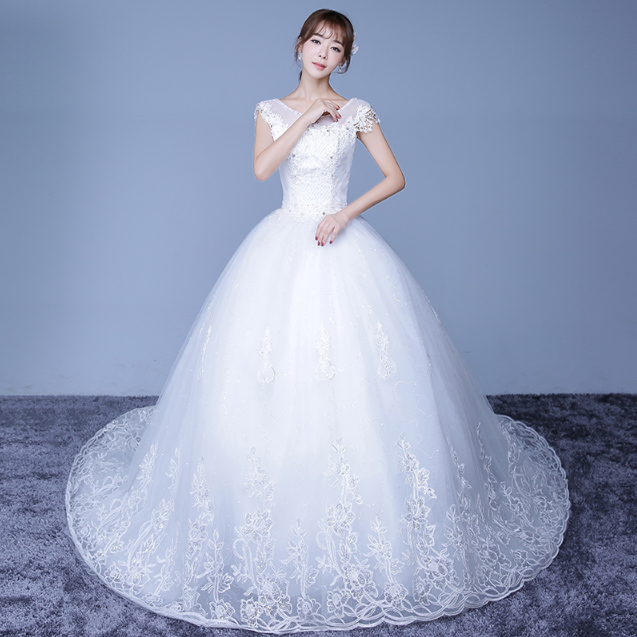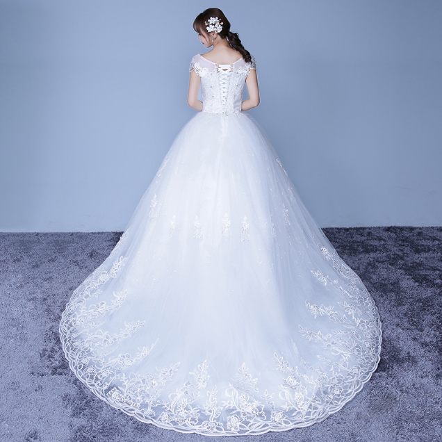 • 婚紗禮服2017新款秋冬季新娘結(jié)婚長(zhǎng)拖尾婚紗一字肩簡(jiǎn)約顯瘦齊