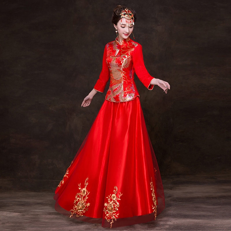 • 送頭飾耳環(huán)】Q55秀禾服紅色新娘結婚中式旗袍敬酒服顯瘦嫁衣