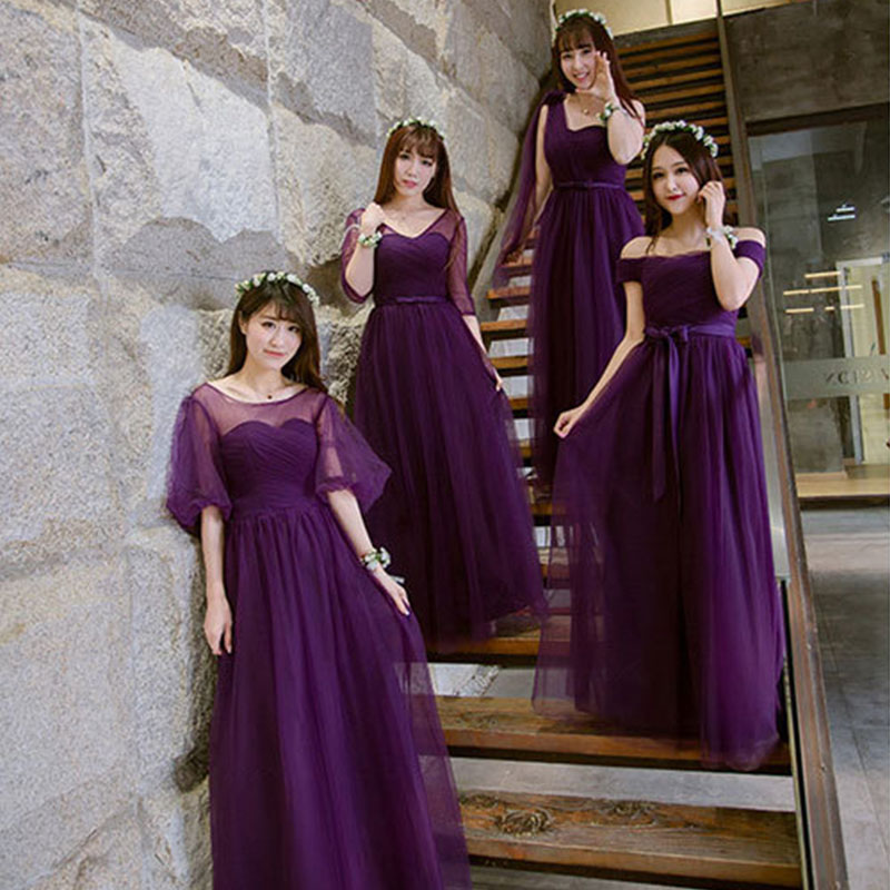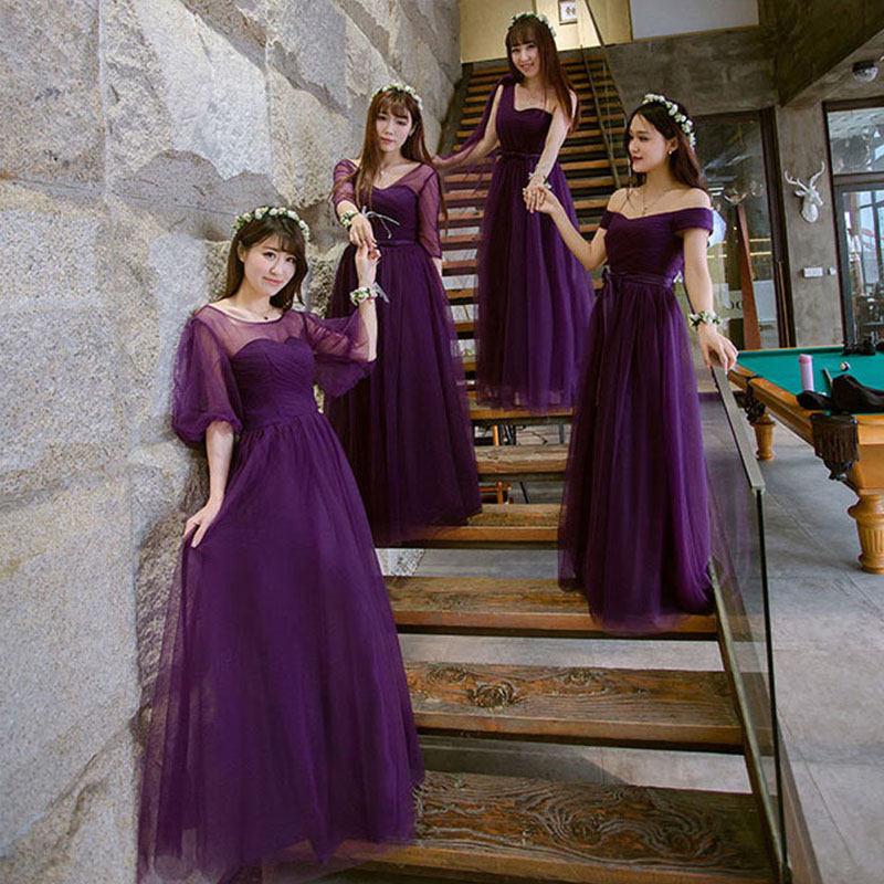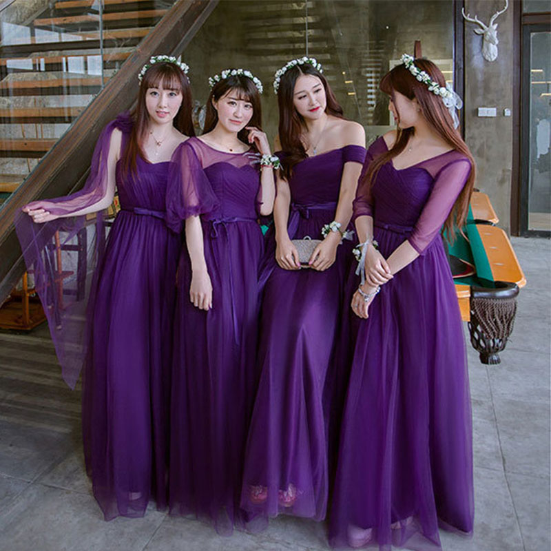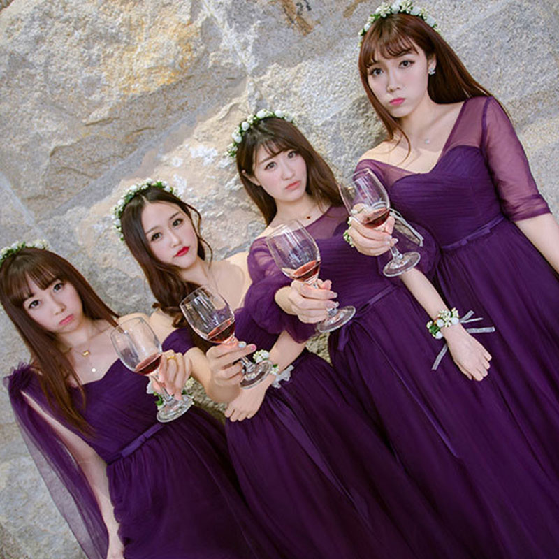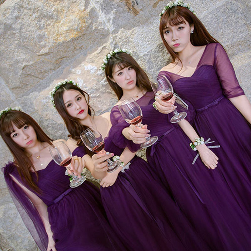 2017伴娘禮服紫色 禮服長(zhǎng)款伴娘服晚禮服 姐妹裙一字肩59