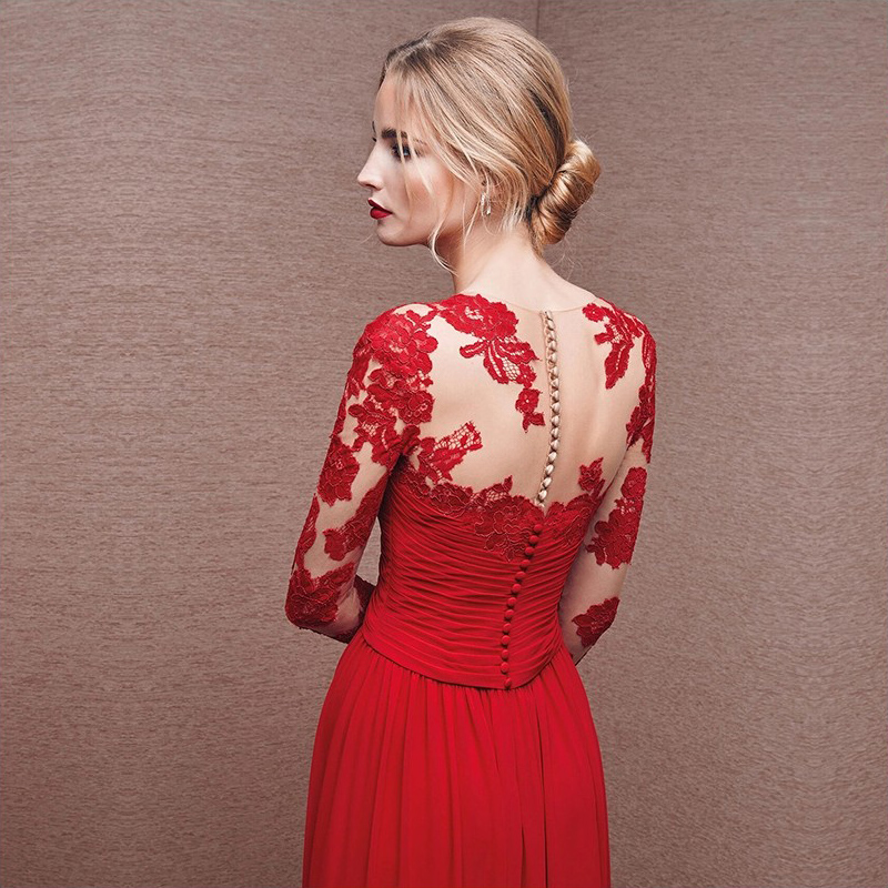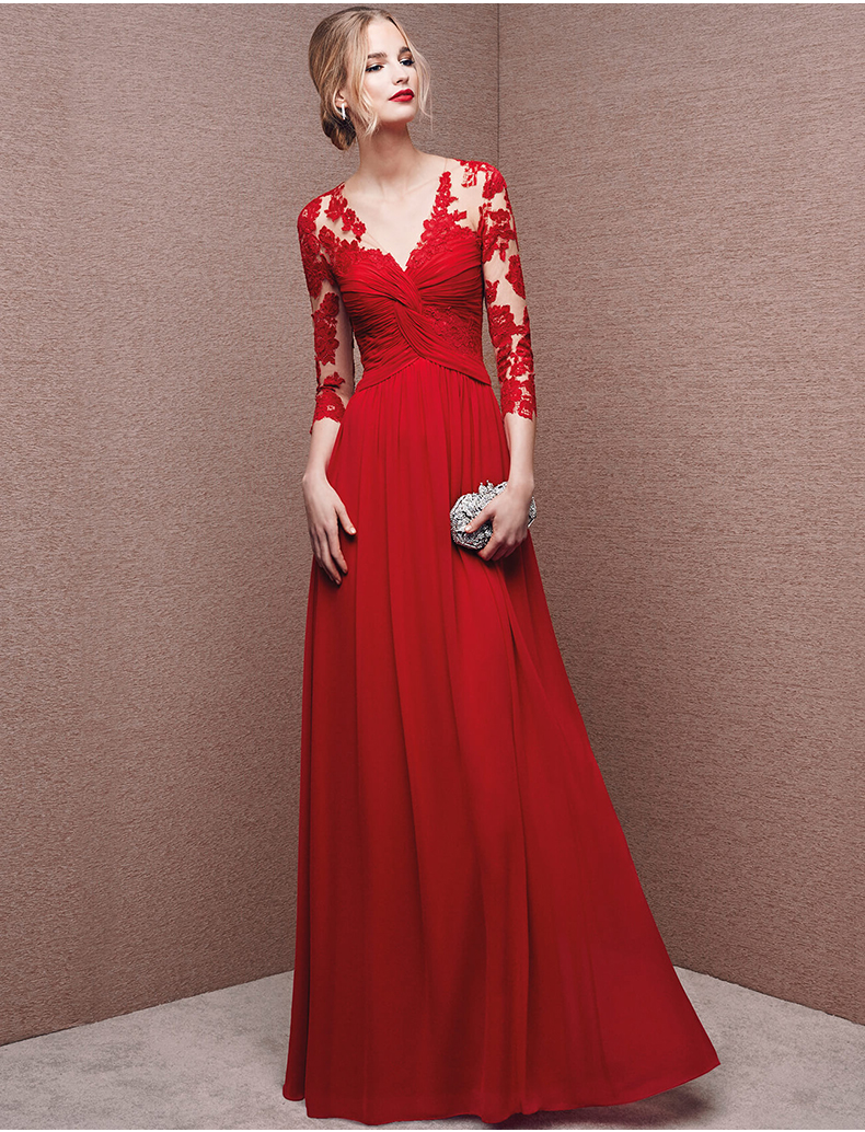 2016新款時尚長袖紅色一字肩新娘結(jié)婚禮服長款敬酒服晚