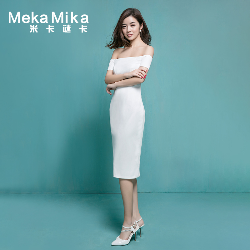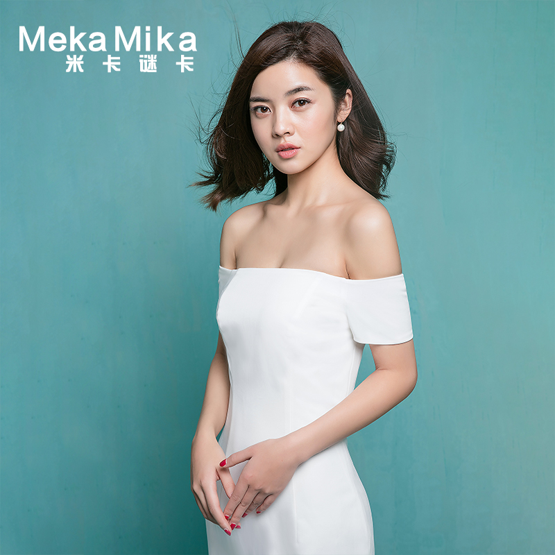• 米卡歆梵2017春季新款大碼婚紗禮服 一字肩 緞面短款年會(huì)