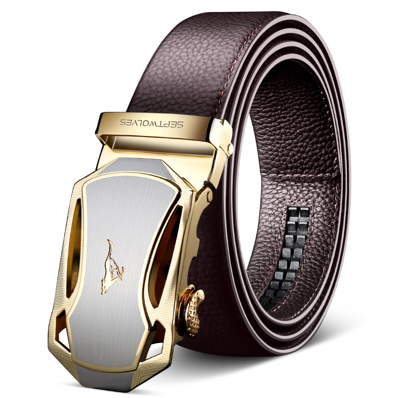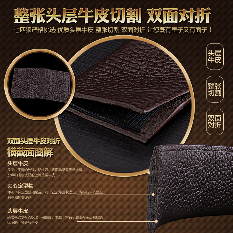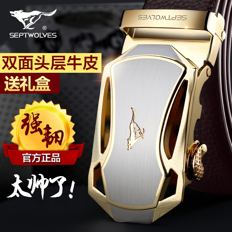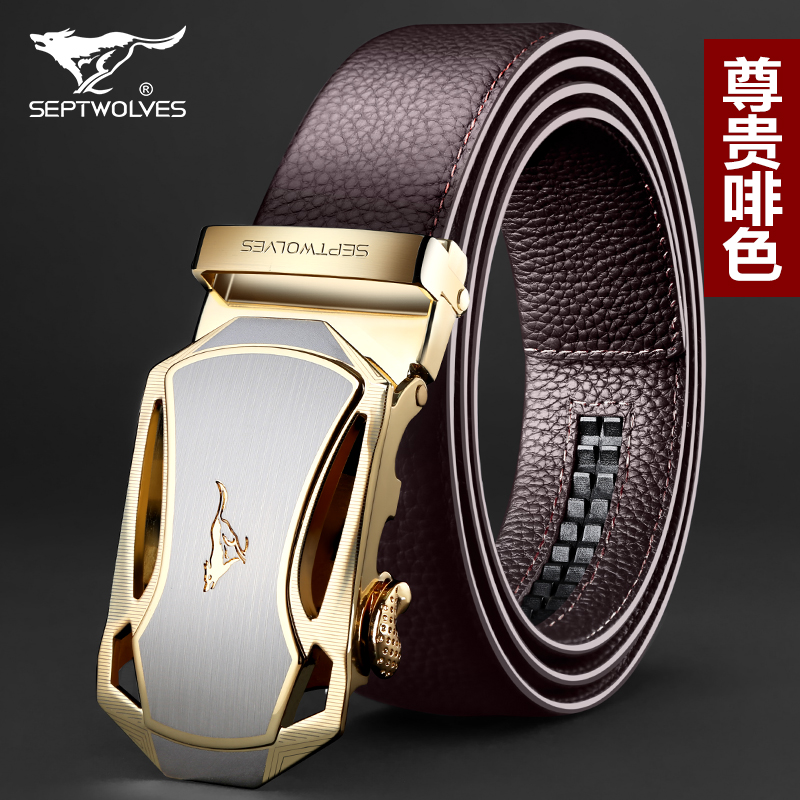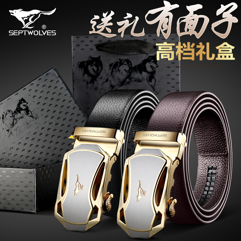 正品七匹狼皮帶男真皮自動扣 男士頭層牛皮腰帶 商務(wù)休閑青年褲