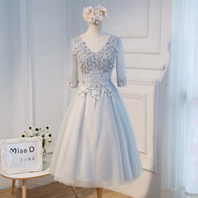 • 年會(huì)禮服女宴會(huì)灰色中長款晚禮服顯瘦伴娘禮服姐妹裙主持人伴娘服