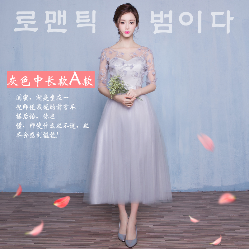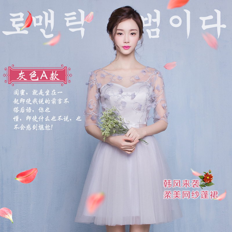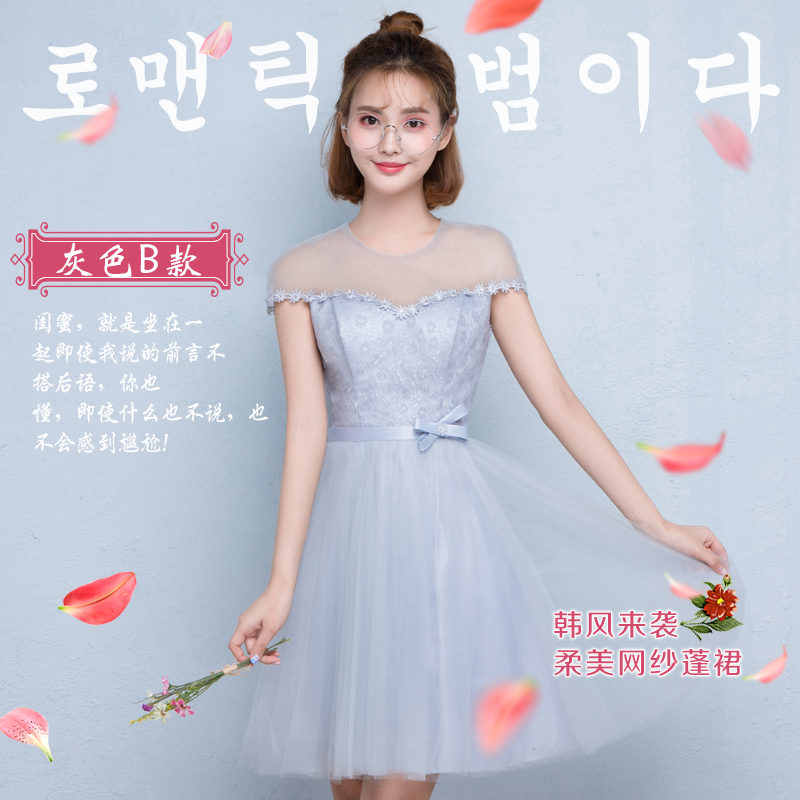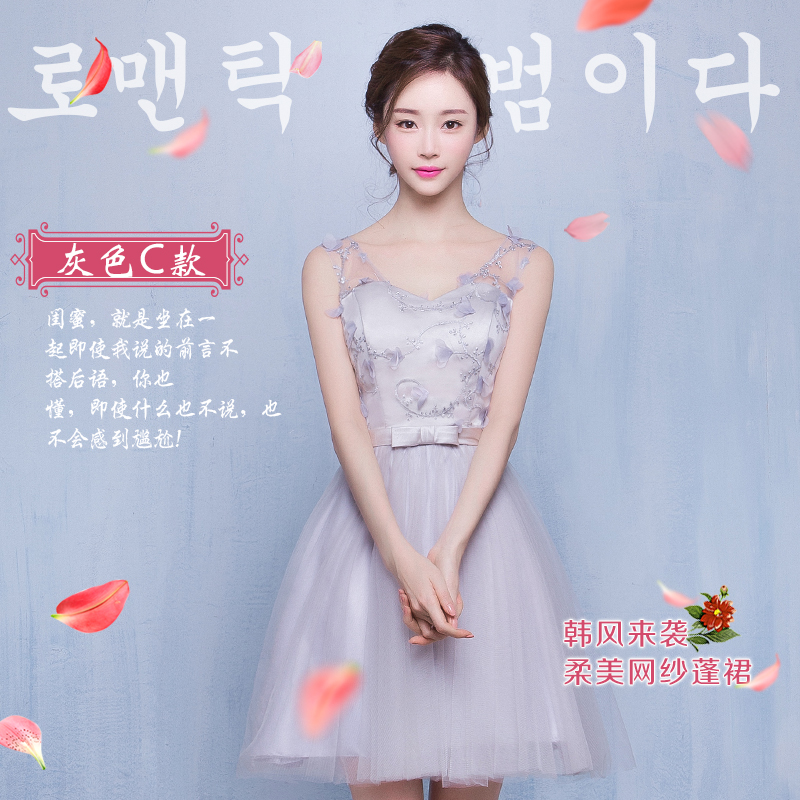 伴娘服短款新款伴娘禮服姐妹裙灰色小禮服宴會(huì)晚禮服顯瘦