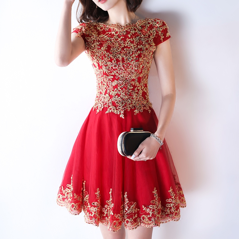 • 敬酒服2017新款夏季韓式短款紅色禮服顯瘦新娘結(jié)婚回門服晚禮