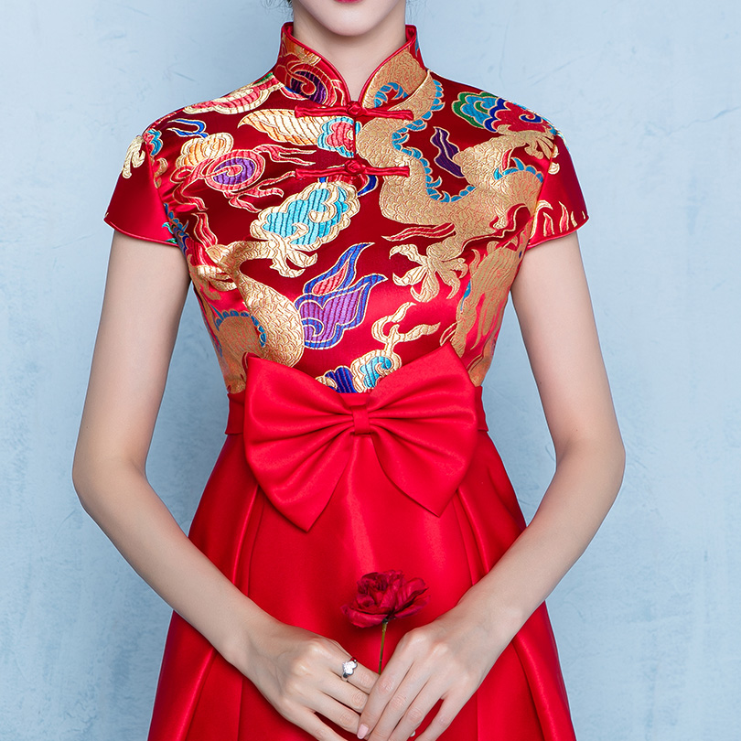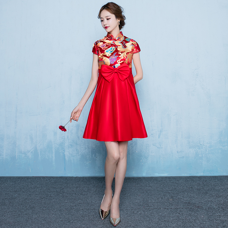• 孕婦敬酒服新娘紅色2017新款中式結(jié)婚禮服女回門服連衣裙夏季