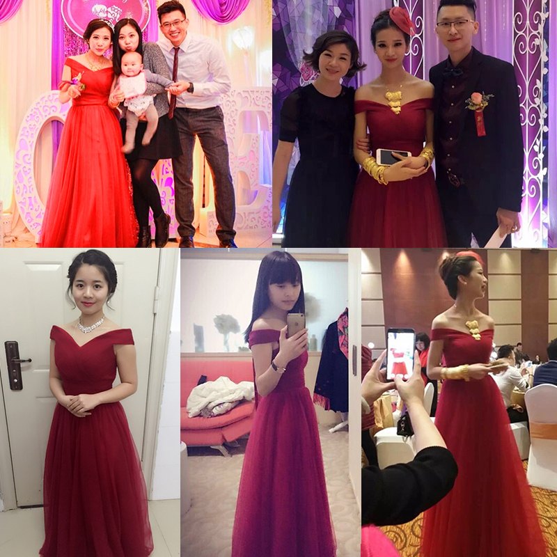 敬酒服2017新款春季一字肩長(zhǎng)款紅色新娘顯瘦孕婦宴會(huì)晚禮服女