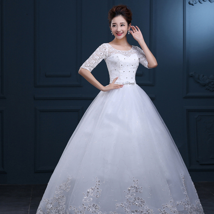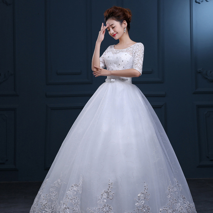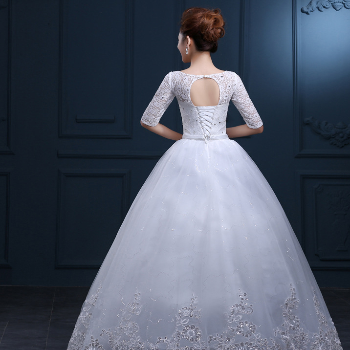 中袖長袖齊地大碼婚紗禮服2017新款蕾絲圓領(lǐng)婚紗禮服73