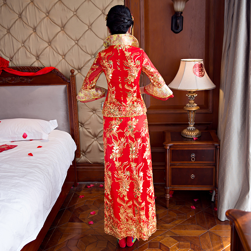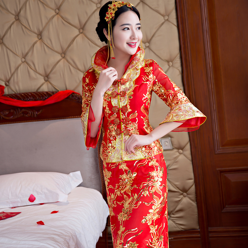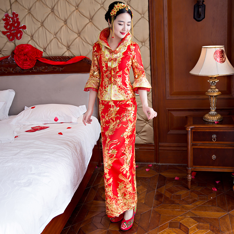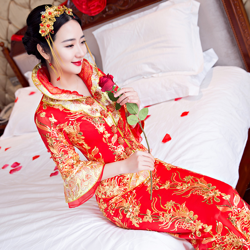 新款春夏古裝結(jié)婚嫁衣喜服中式敬酒服旗袍修身