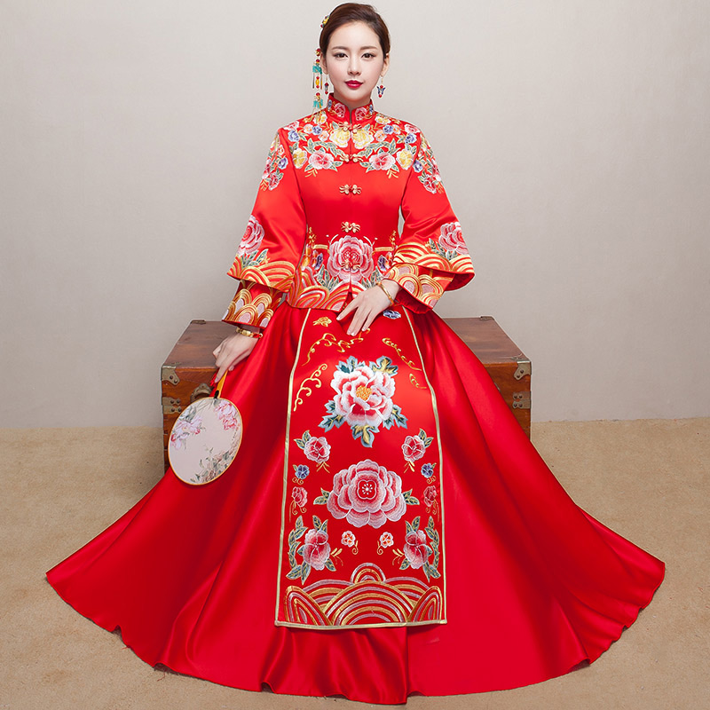 • 【下單送頭飾+耳環(huán)】秀禾服新款中式結(jié)婚禮服新娘敬酒服旗袍嫁衣
