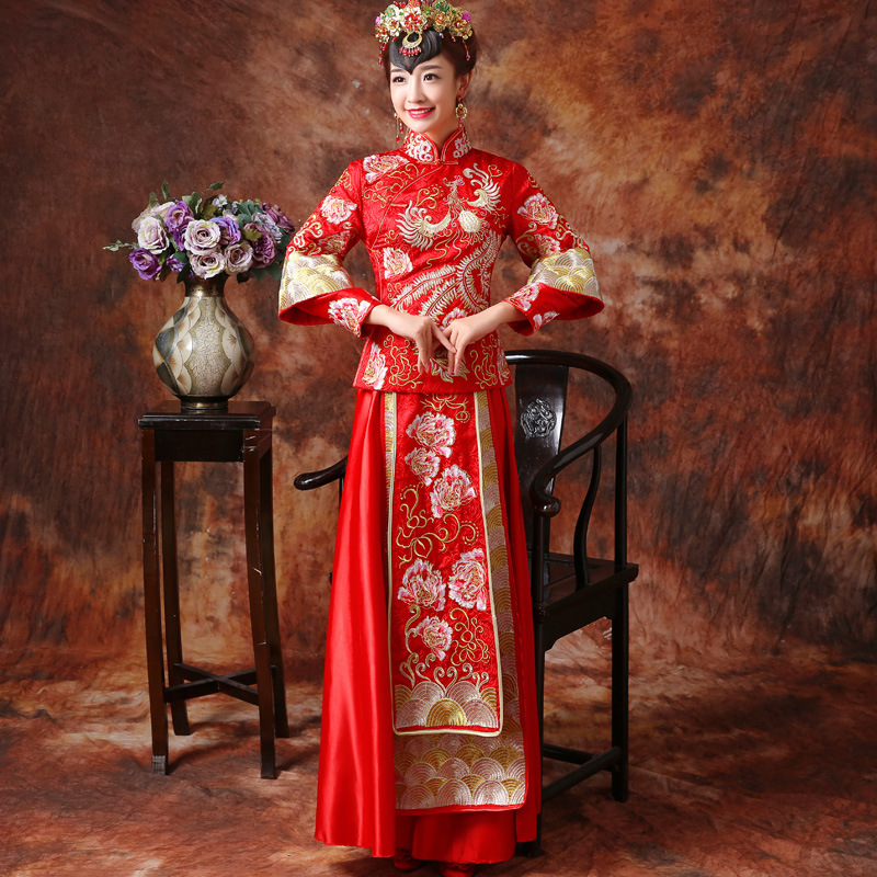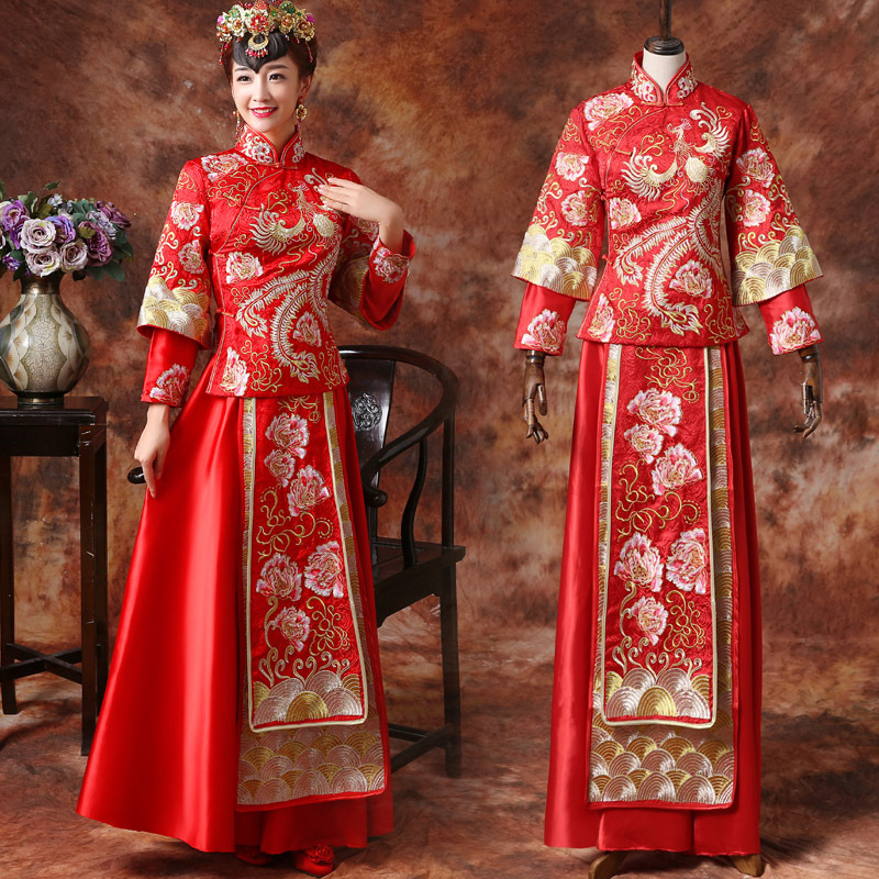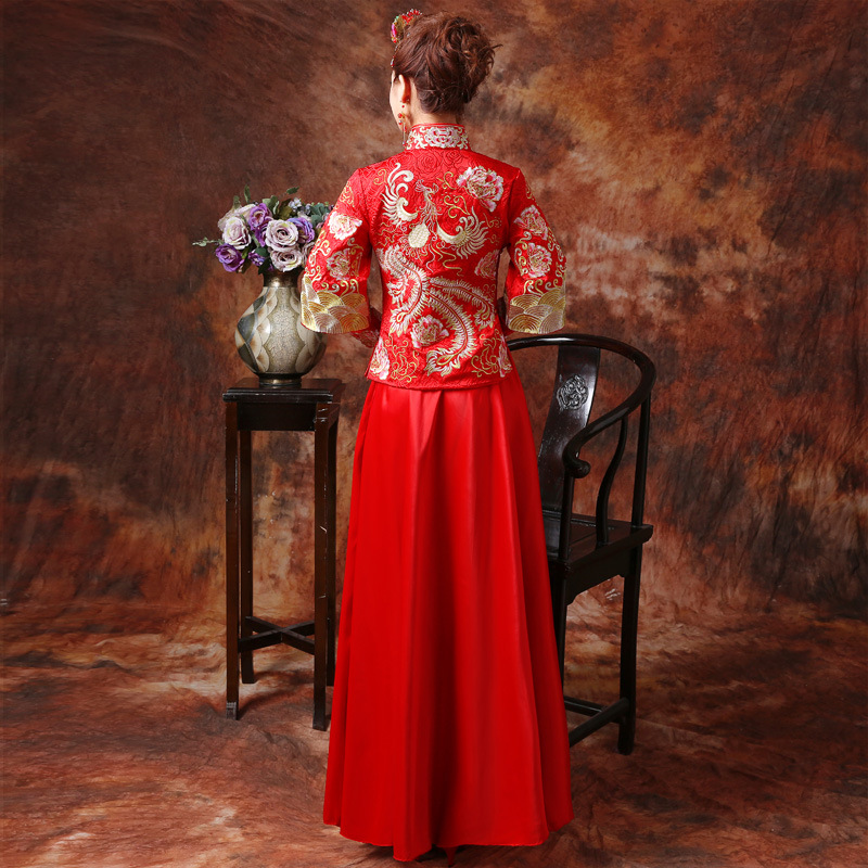 新款秀禾服新娘紅色中式結(jié)婚禮服敬酒服龍鳳褂黃曉明baby同款