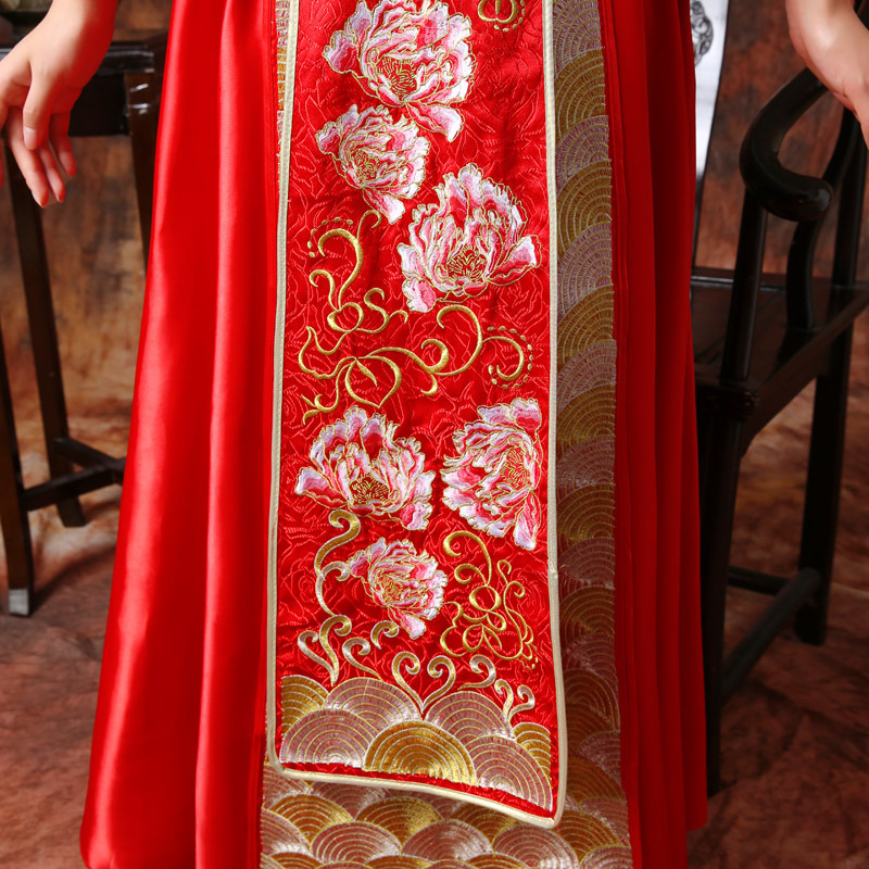 • 新款秀禾服新娘紅色中式結(jié)婚禮服敬酒服龍鳳褂黃曉明baby同款