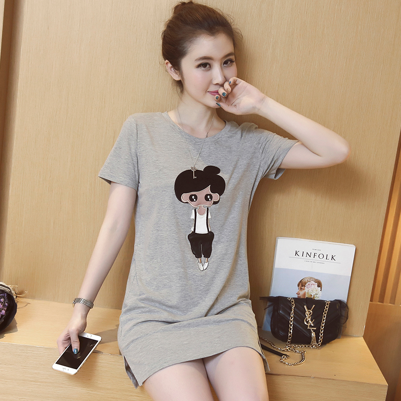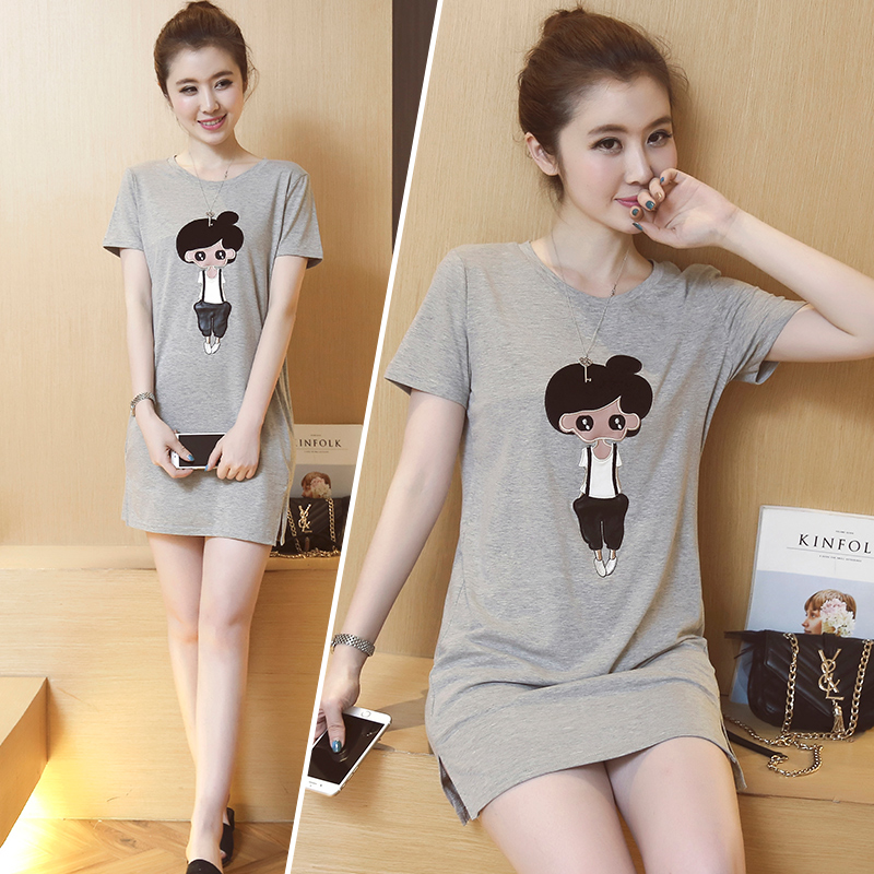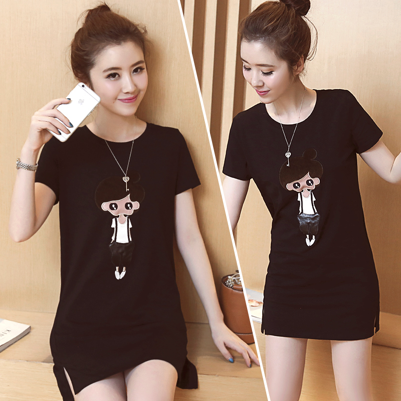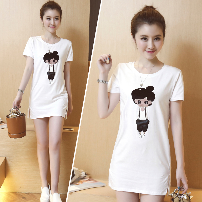2017夏季新款韓版中長款寬松短袖t恤回門服時尚個性百搭夏天