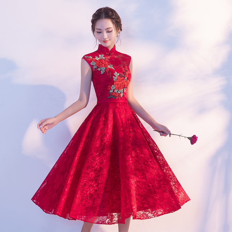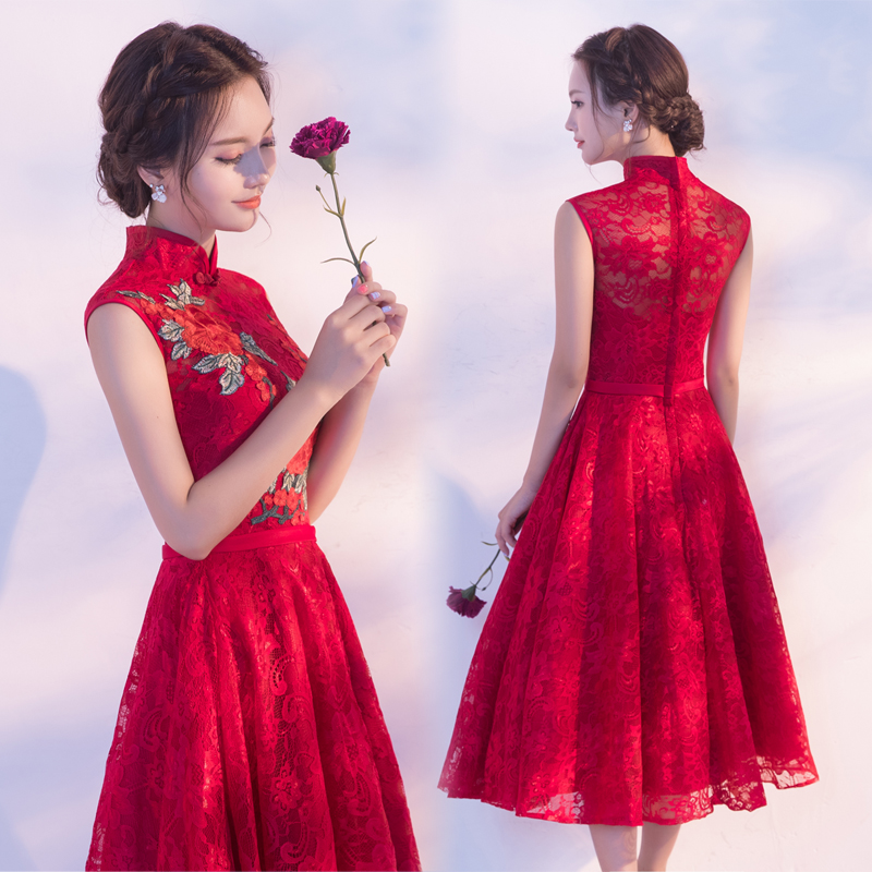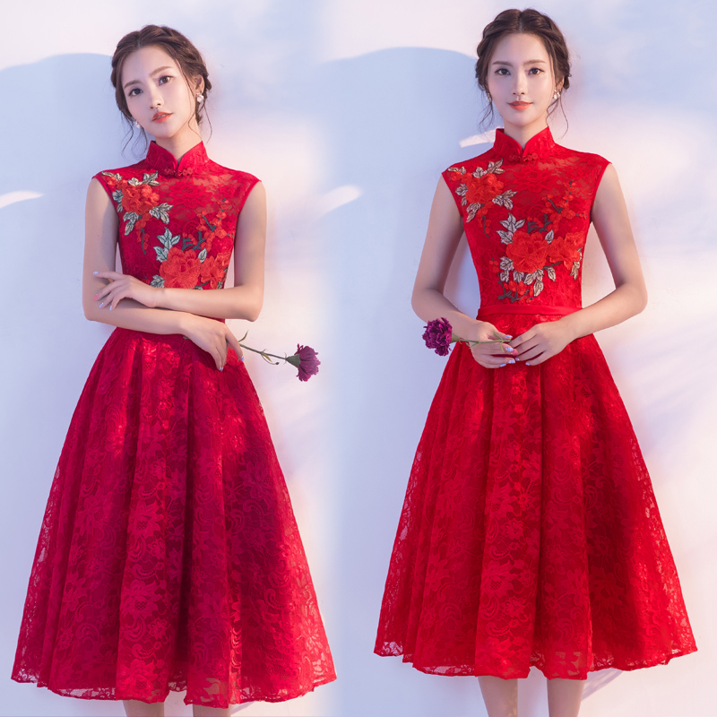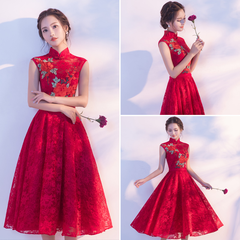 • 新款夏季敬酒服長款酒紅色立領(lǐng)中式新娘結(jié)婚禮服回門服顯瘦