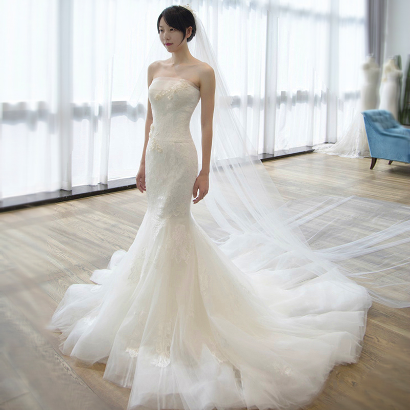婚紗禮服2017新款韓式收腰魚尾新娘結(jié)婚小拖尾齊地簡約抹胸婚