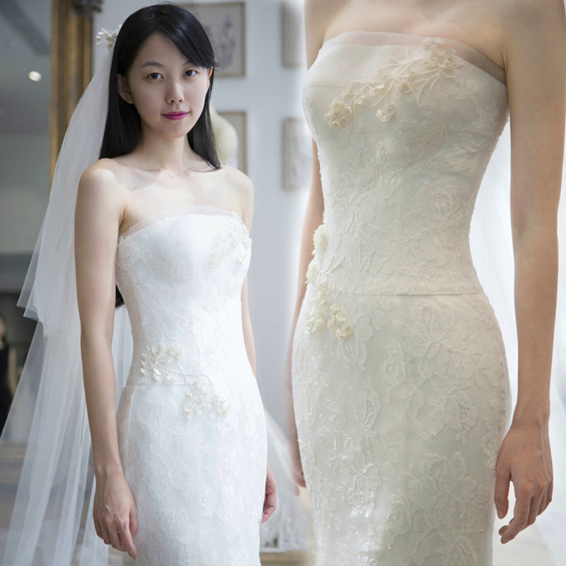 • 婚紗禮服2017新款韓式收腰魚尾新娘結(jié)婚小拖尾齊地簡約抹胸婚
