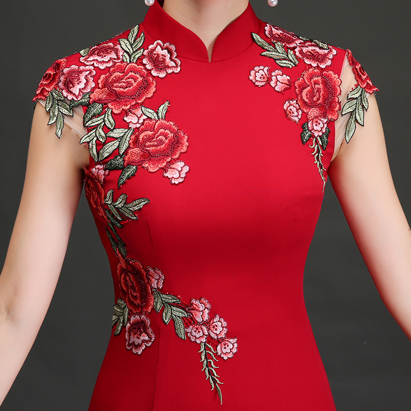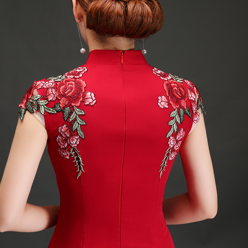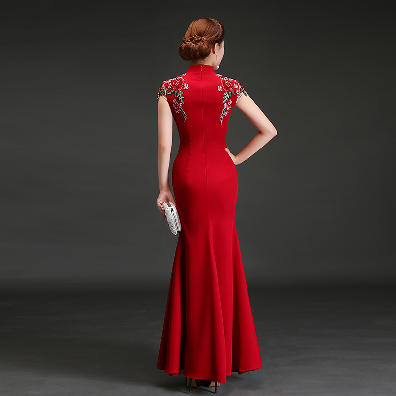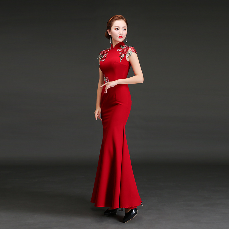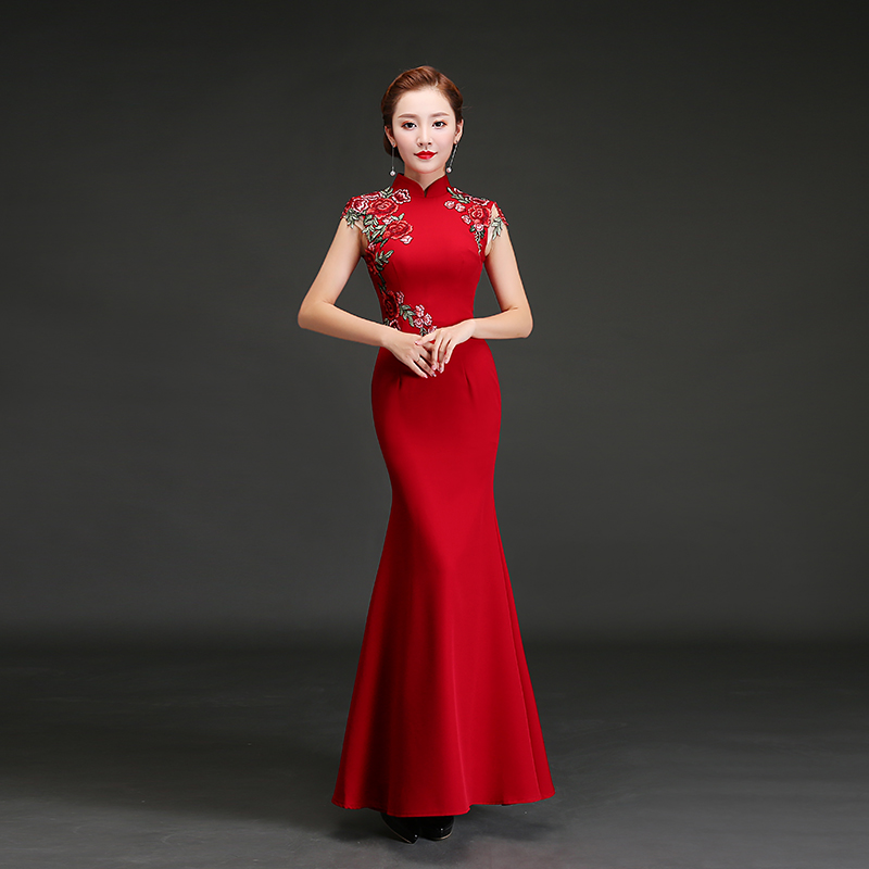 • 敬酒服新娘2017新款秋季紅色結(jié)婚魚(yú)尾長(zhǎng)款旗袍宴會(huì)晚禮服修身