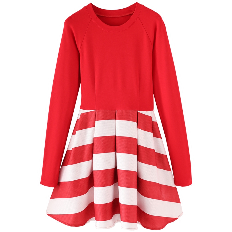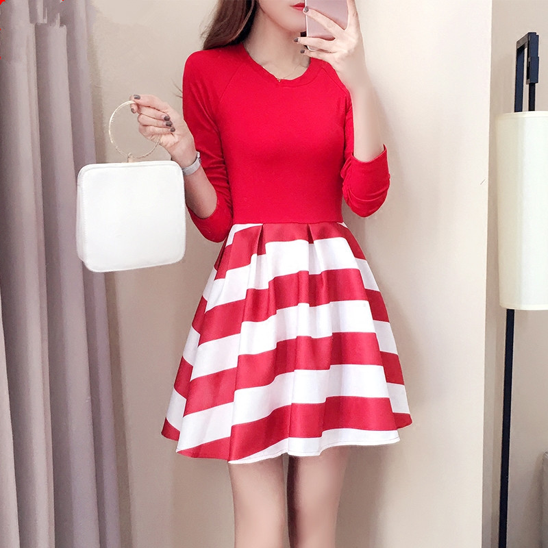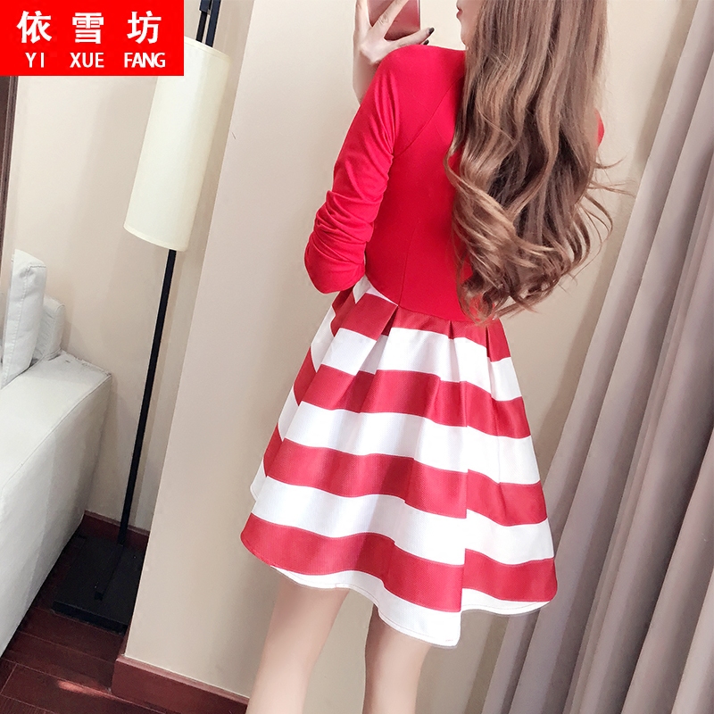 • 秋款連衣裙2017新款女 韓版時尚正式場合紅白條紋可愛女裝