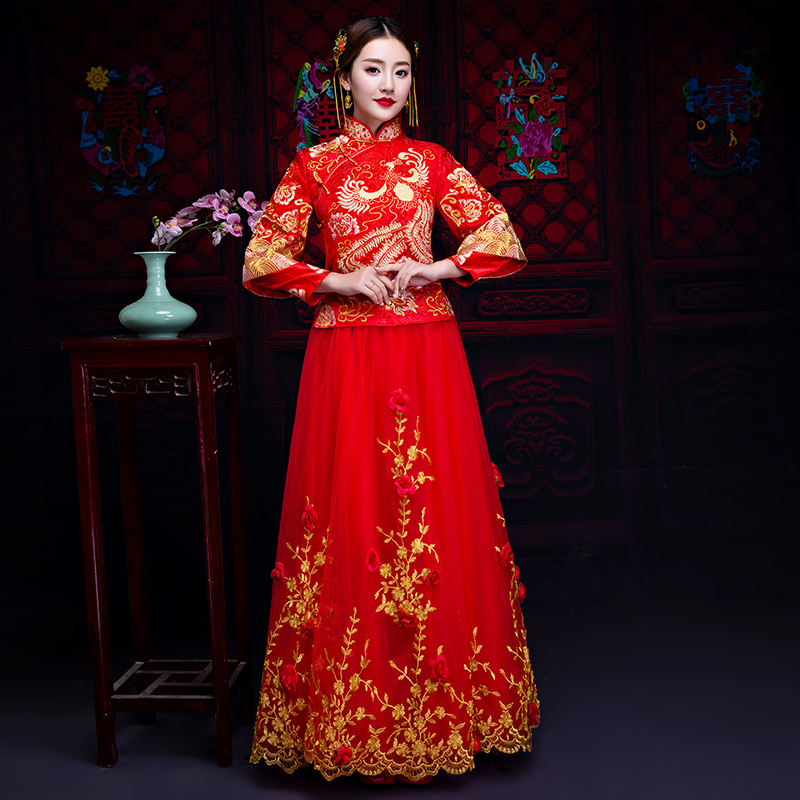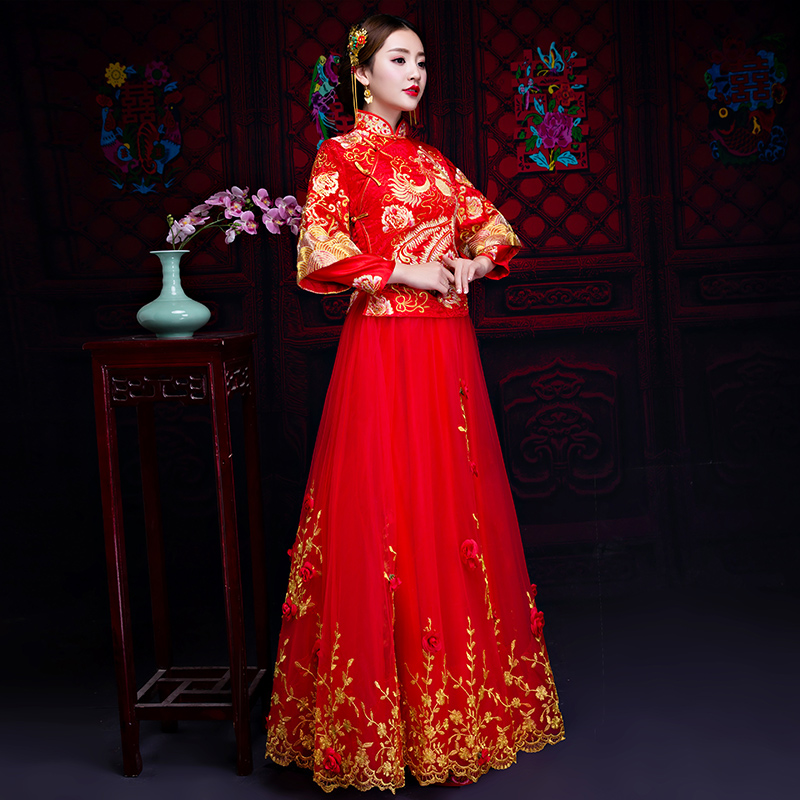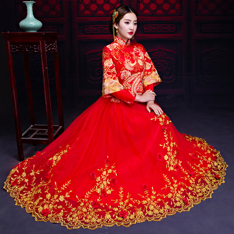 秀禾服新娘新款結(jié)婚中式婚紗禮服龍鳳褂敬酒服旗袍女嫁衣