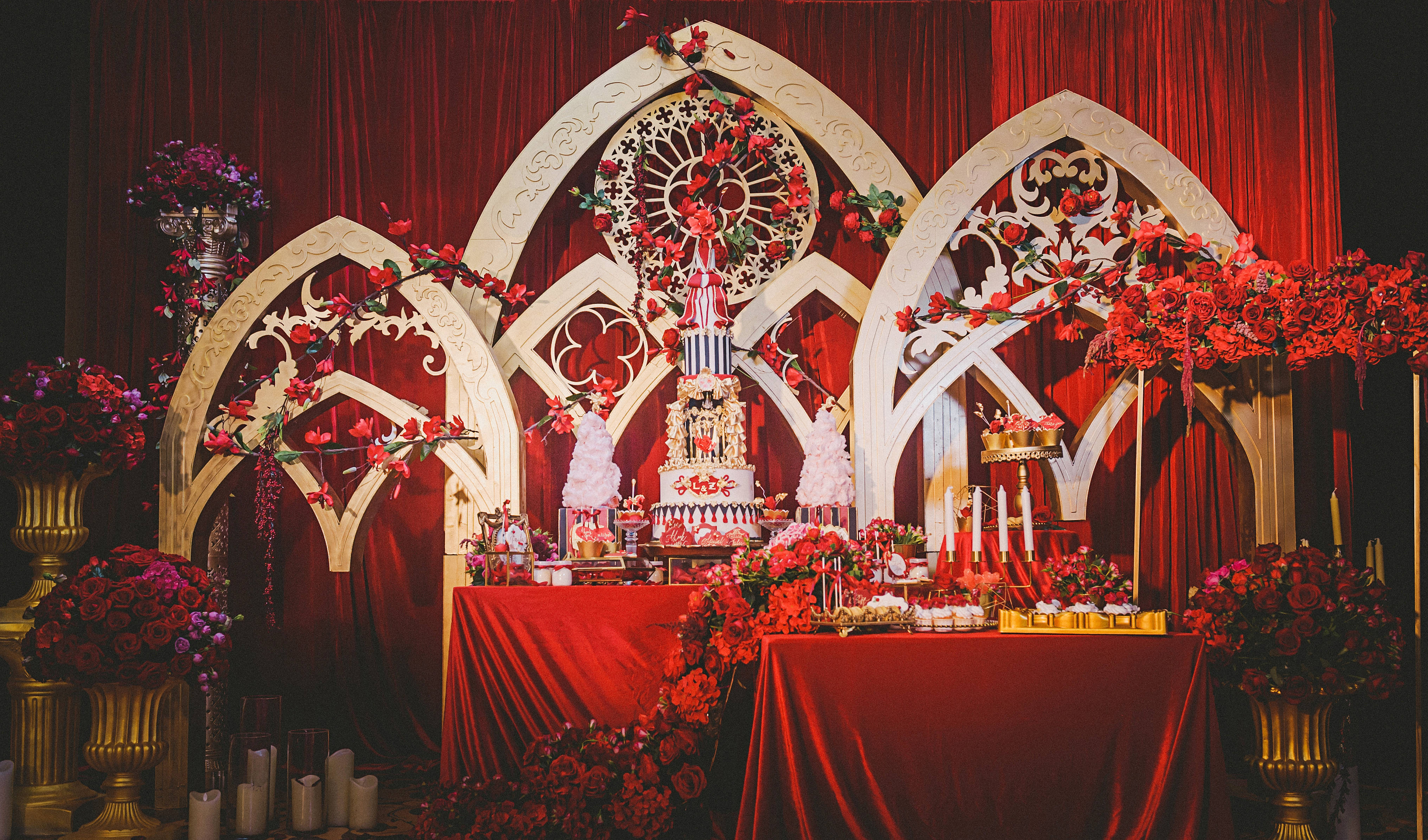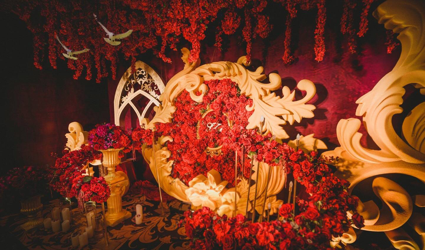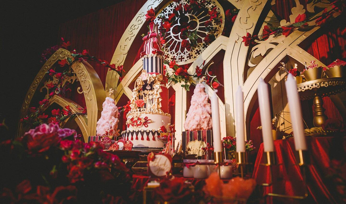 奢華的紅金色歐式宮廷花園風(fēng)婚禮——瑰庭