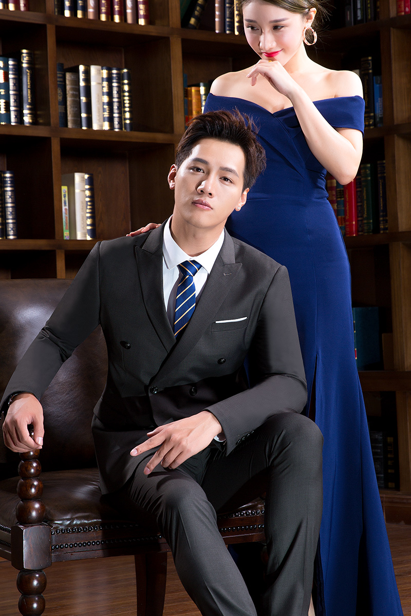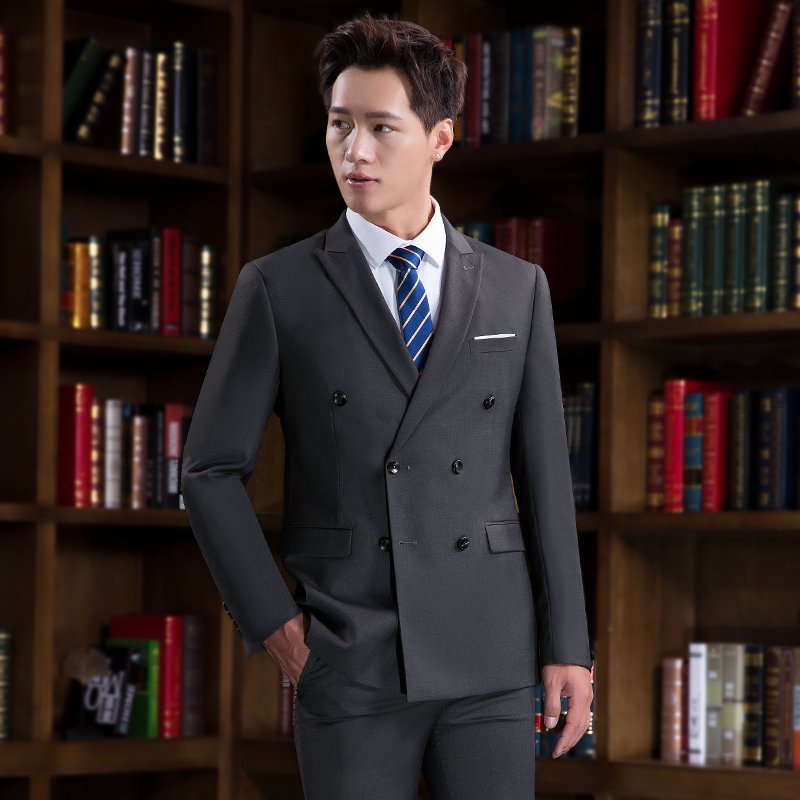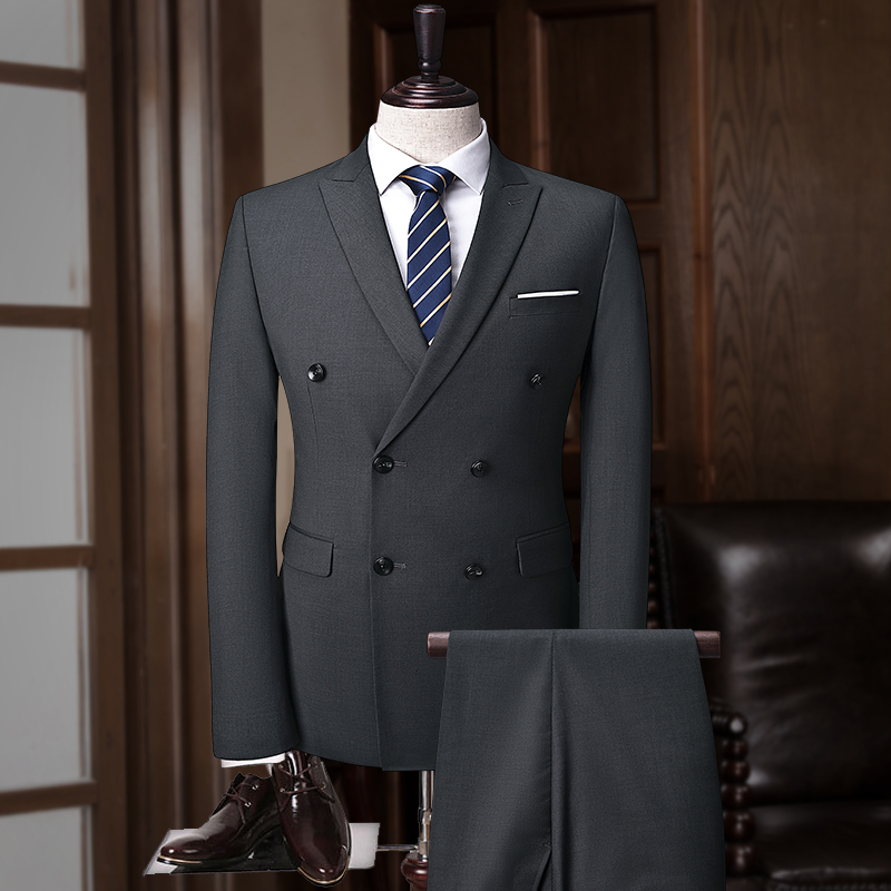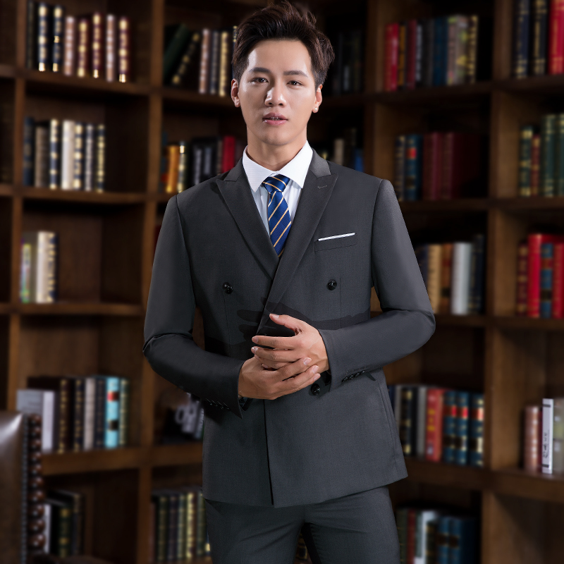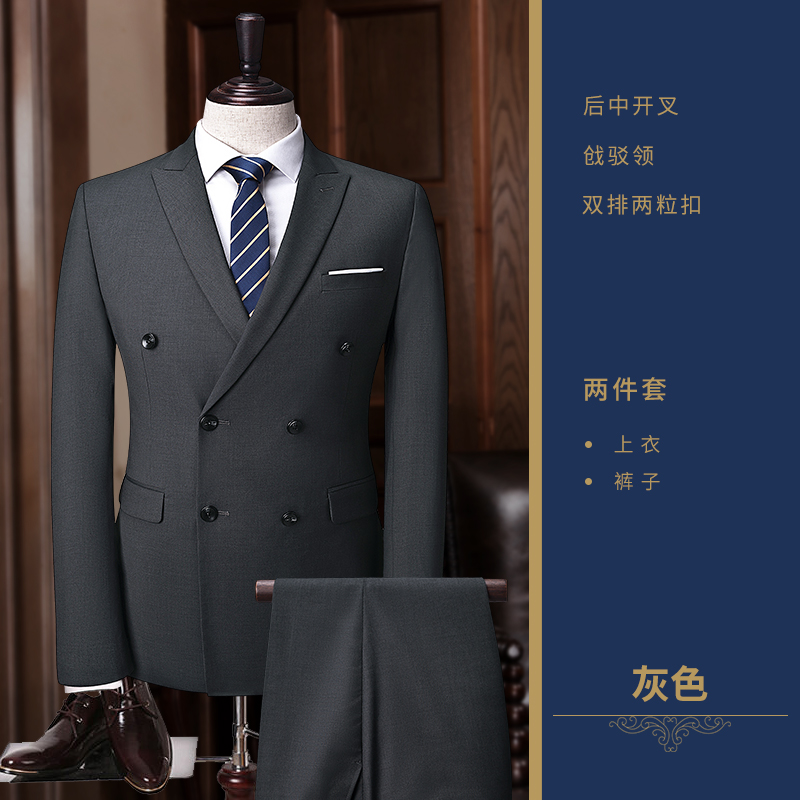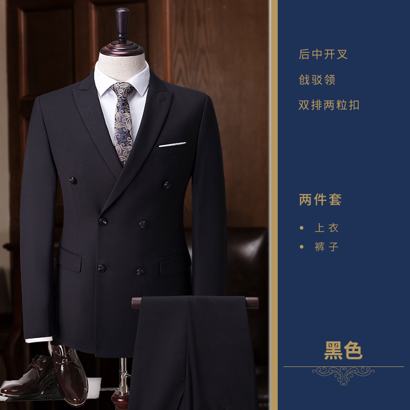 • 2017新款婚禮西服兩件套 修身雙排扣男士正裝西服