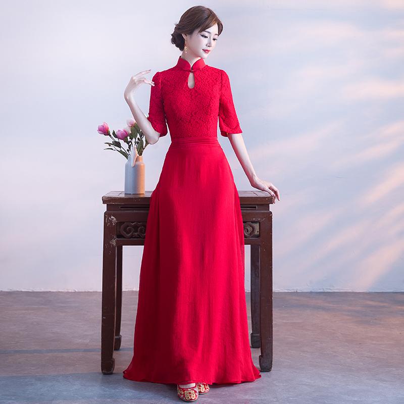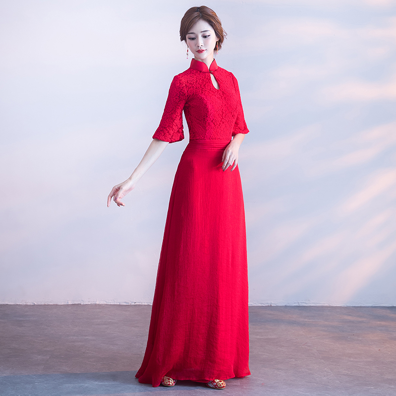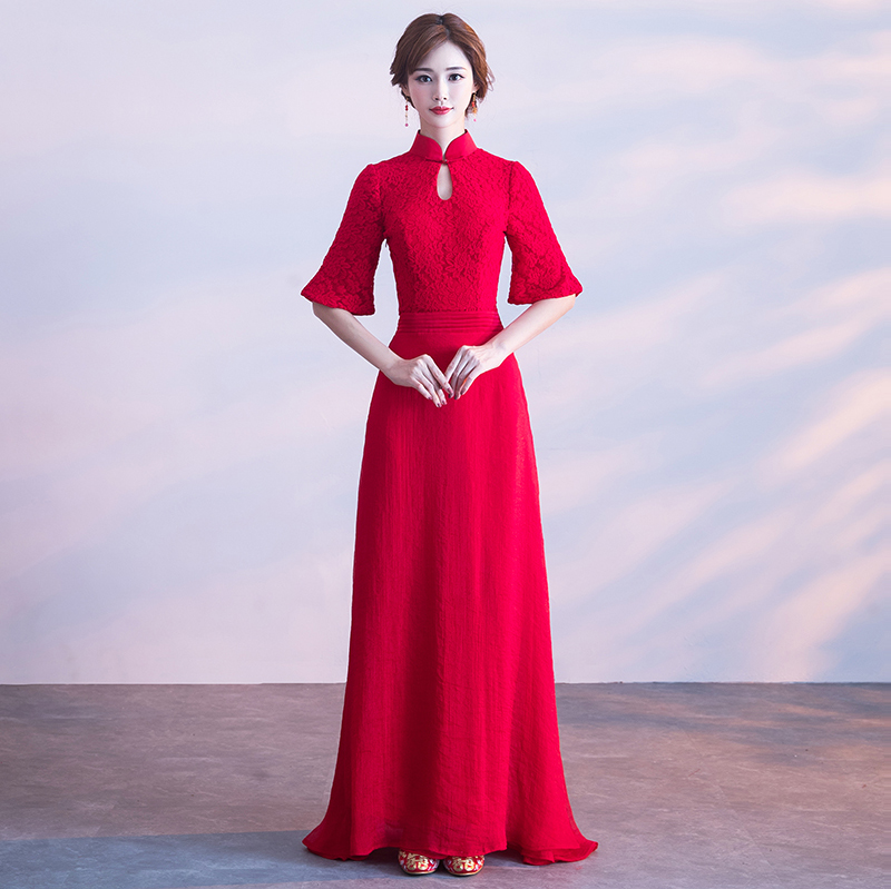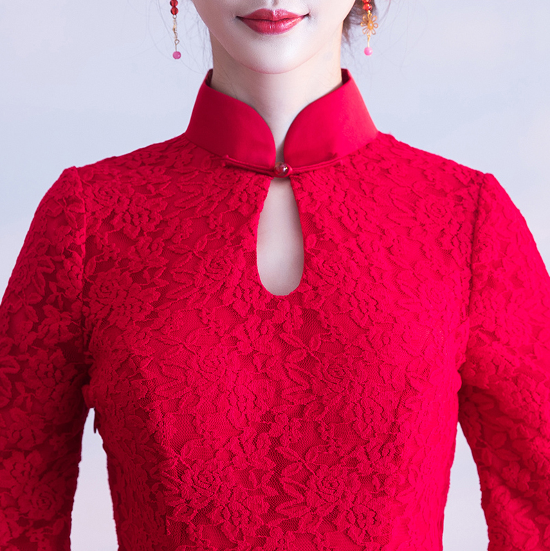 • 冬季加厚!修身!2017新款修身顯瘦長款中國風(fēng)紅色結(jié)婚禮服女