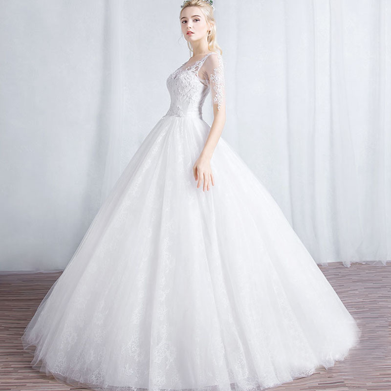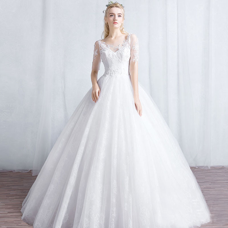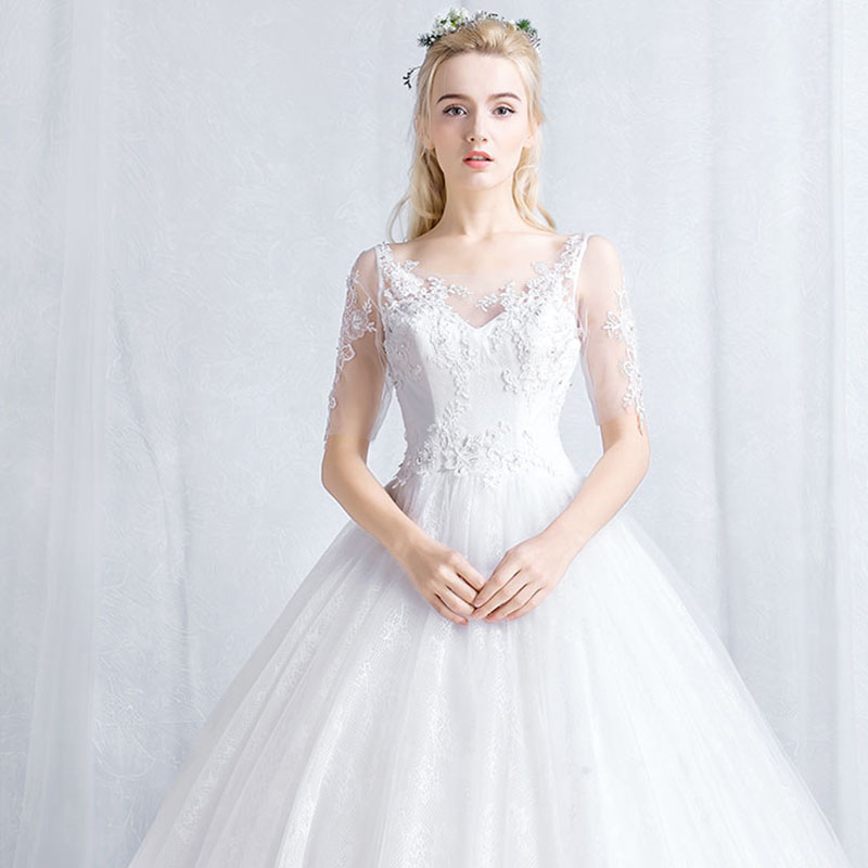• 冬季新款新娘結(jié)婚一字肩齊地長袖韓式簡約婚紗832