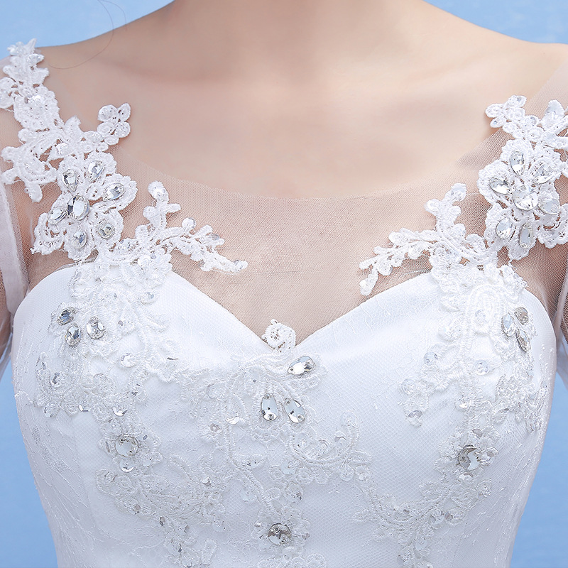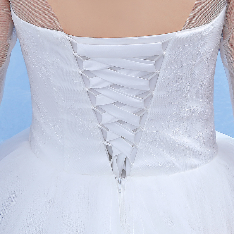 • 新娘婚紗2017新娘長(zhǎng)袖婚紗禮服韓式一字肩中袖白色婚紗大碼