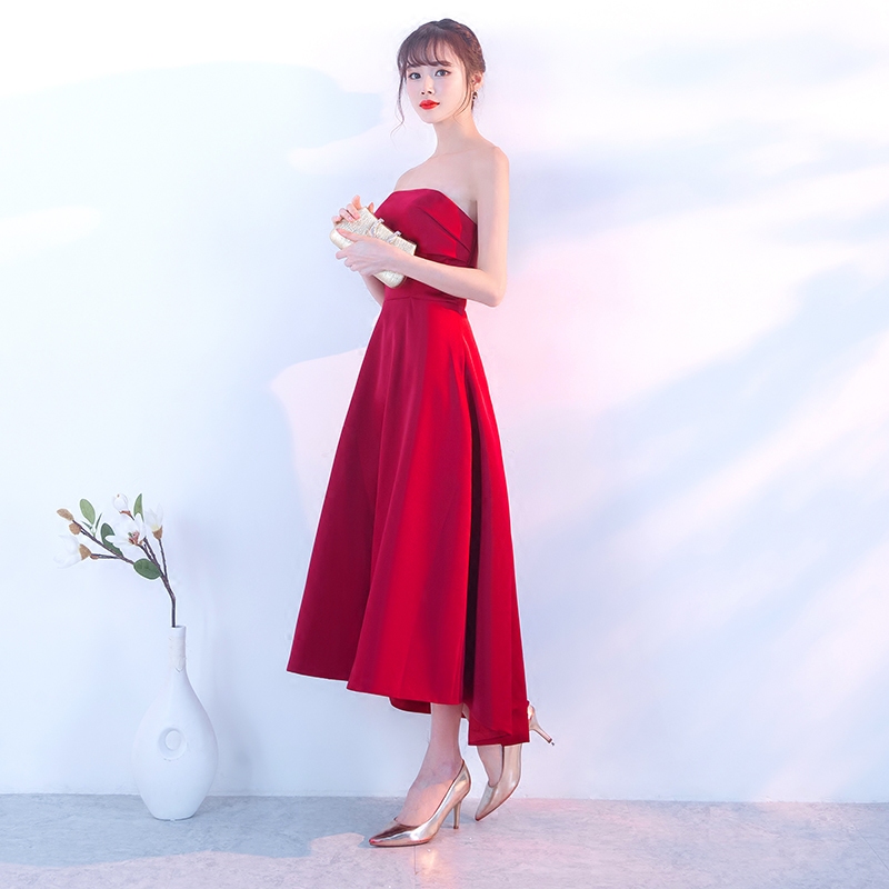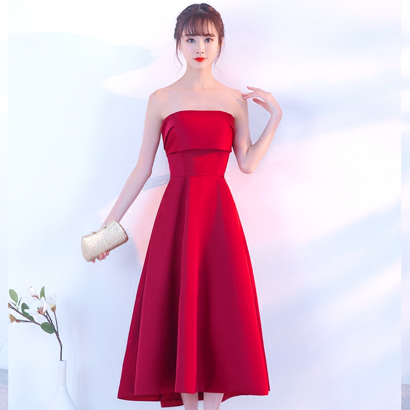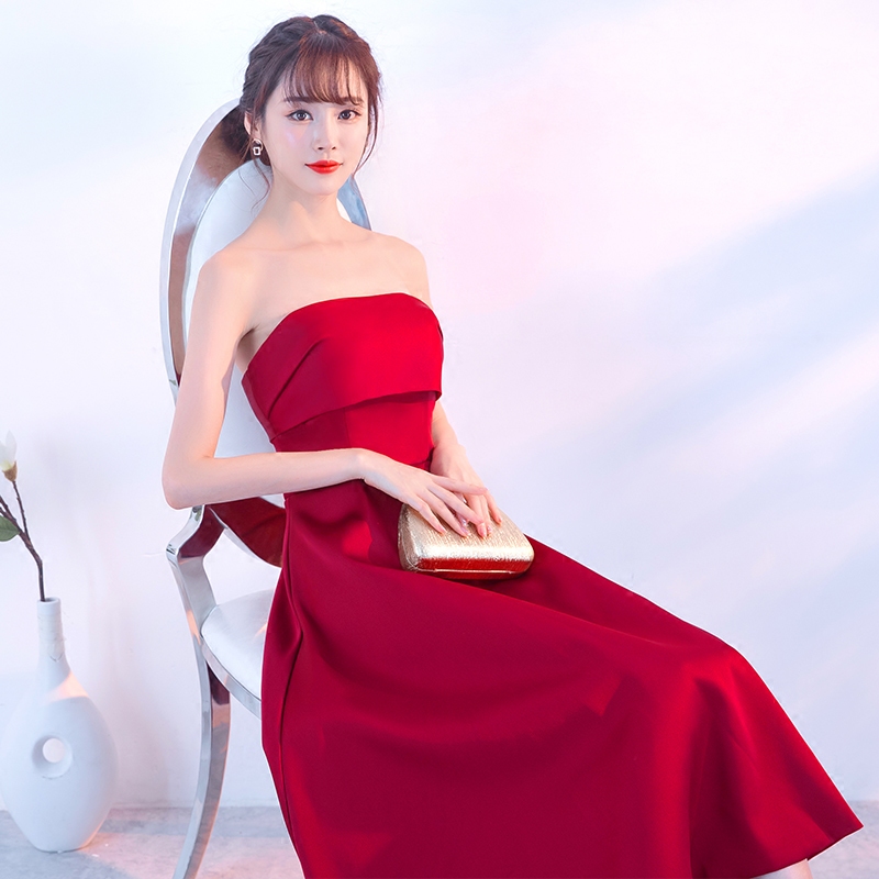 • 秋季敬酒服2017新款新娘結(jié)婚訂婚回門服中長款顯瘦紅色抹胸禮