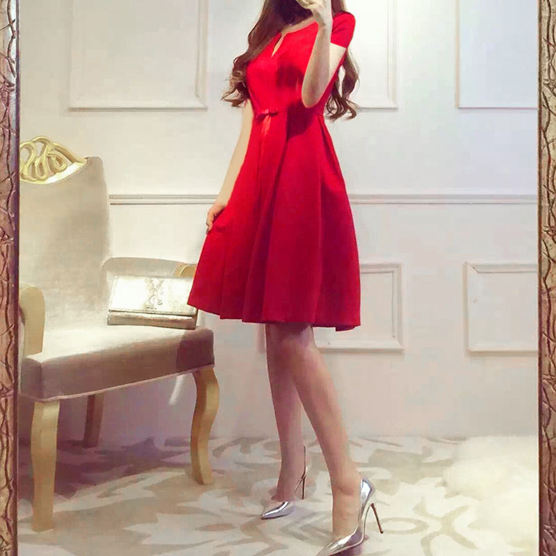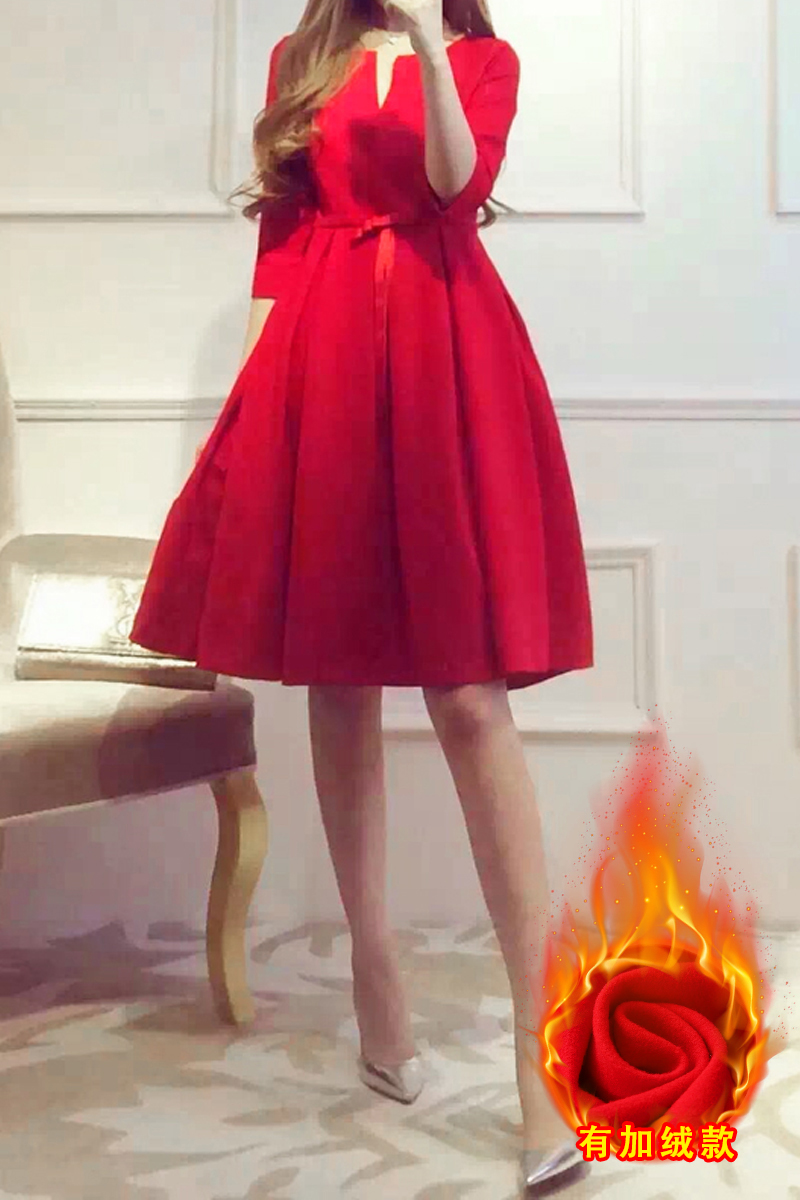 • 2017新款敬酒服新娘冬季短款孕婦結(jié)婚禮服紅色連衣裙女回門服