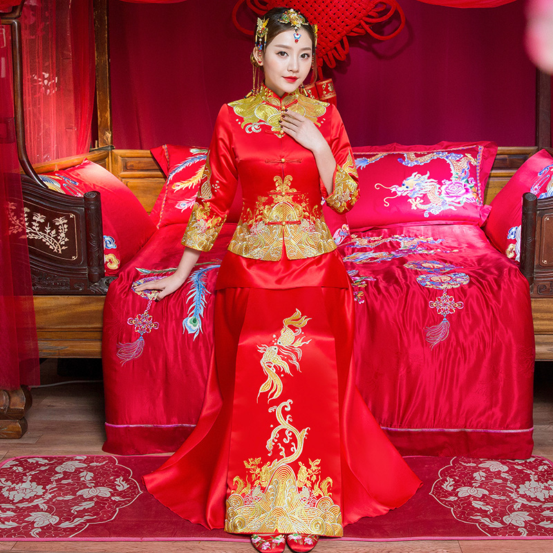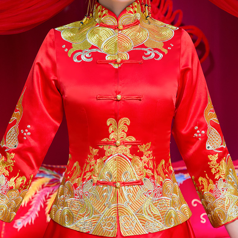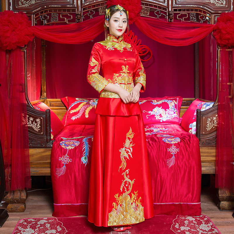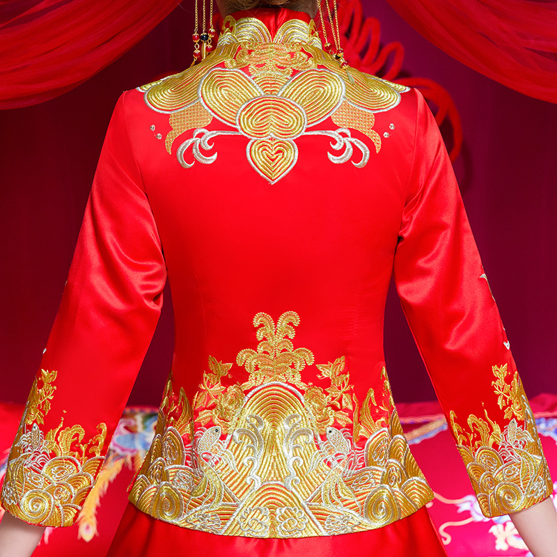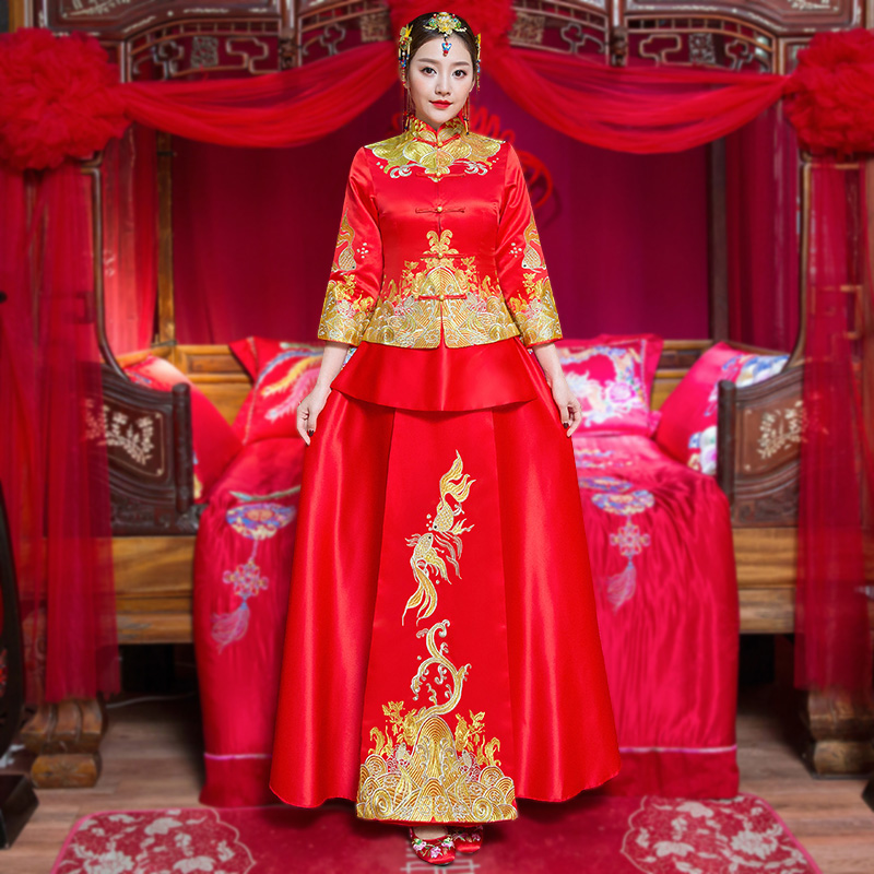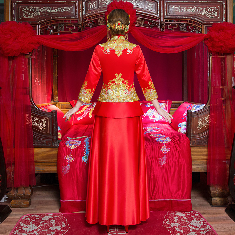 • 安以軒同款秀禾服2017新款冬新娘結(jié)婚中式修身敬酒服秀和服女