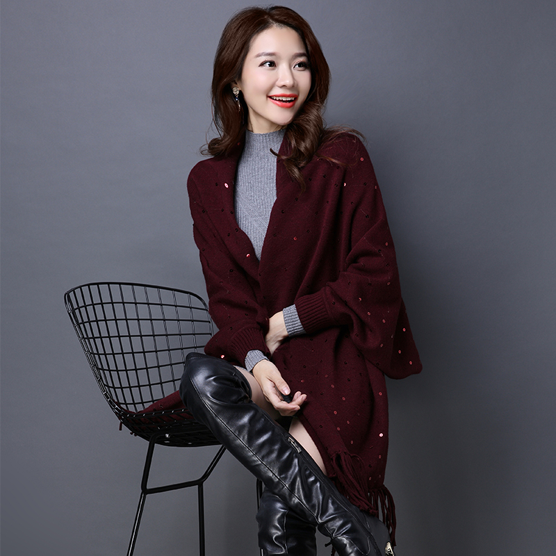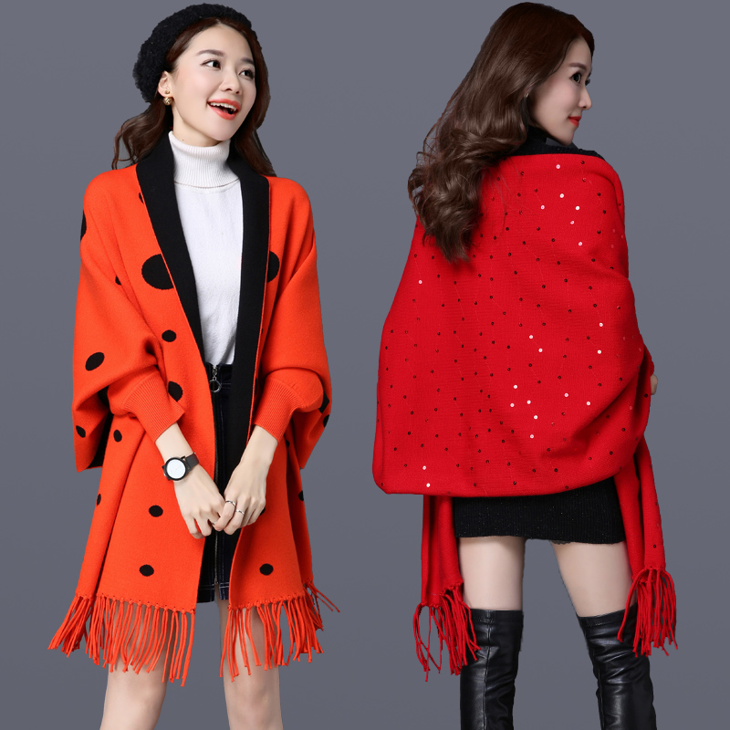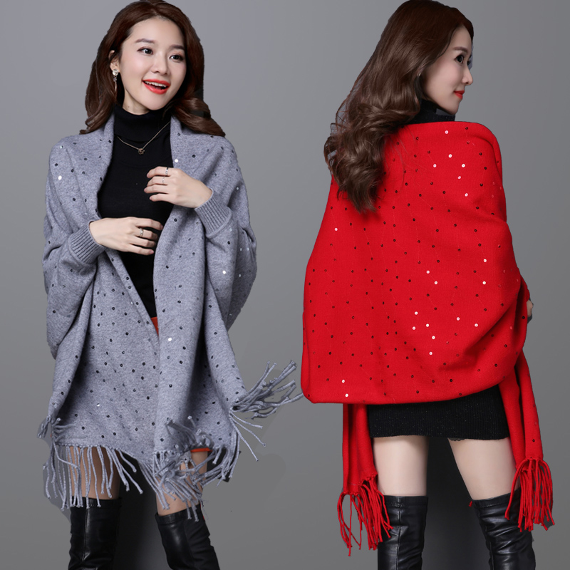 • 秋冬羊絨披肩圍巾兩用加厚帶袖子春秋2017新款冬季斗篷披風(fēng)外