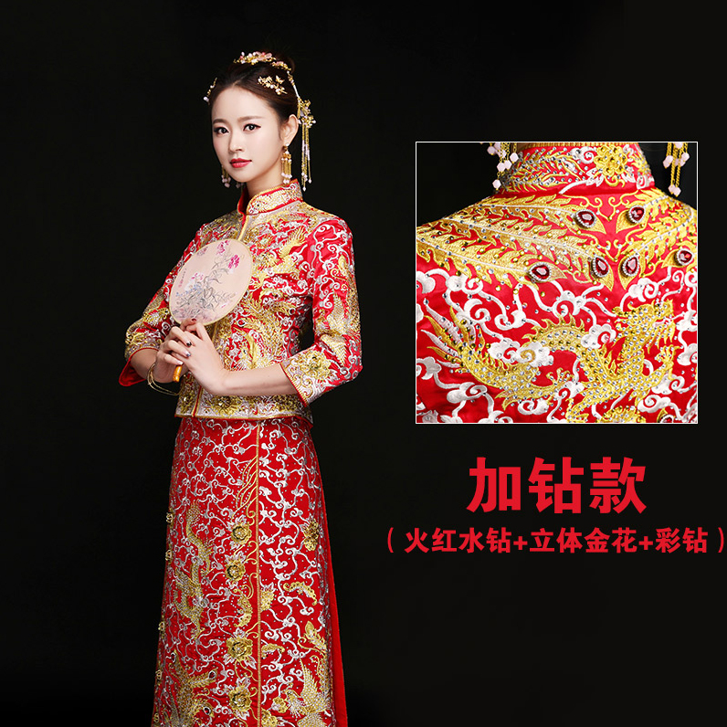 傳統(tǒng)龍鳳祥服!2017新款婚紗旗袍冬婚禮禮服敬酒服新娘中式