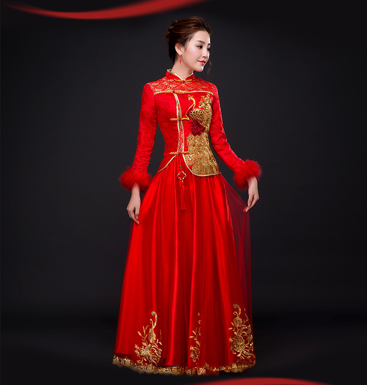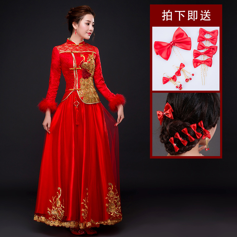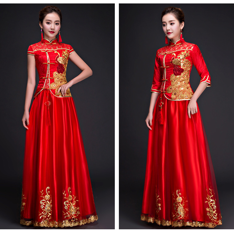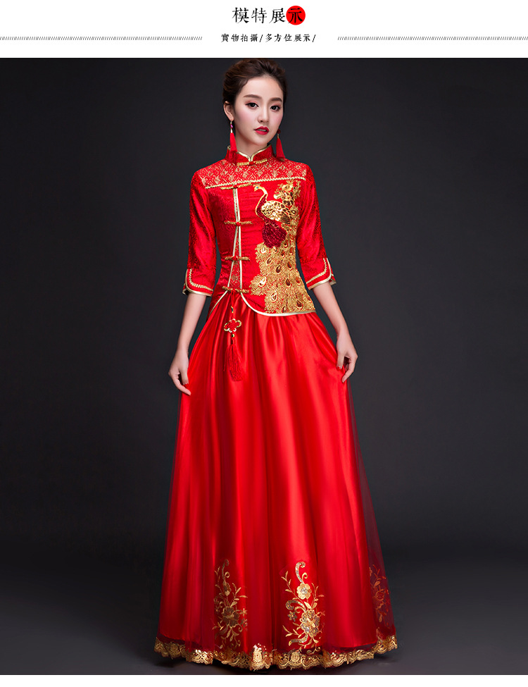 • 中式新娘嫁衣秀禾服2017新款春夏顯瘦紅色改良復(fù)古旗袍敬酒服