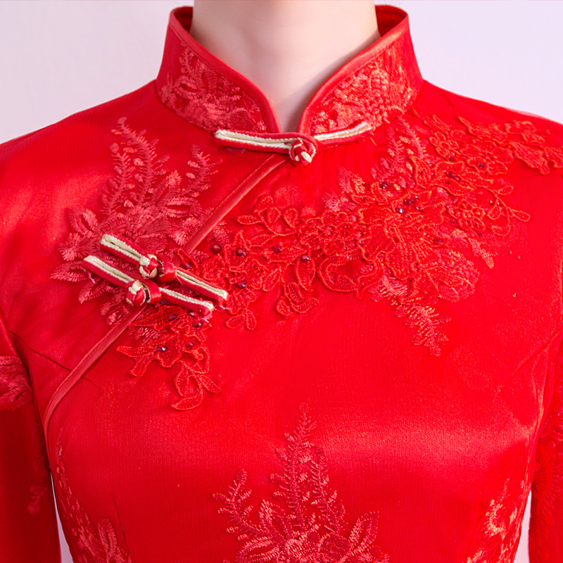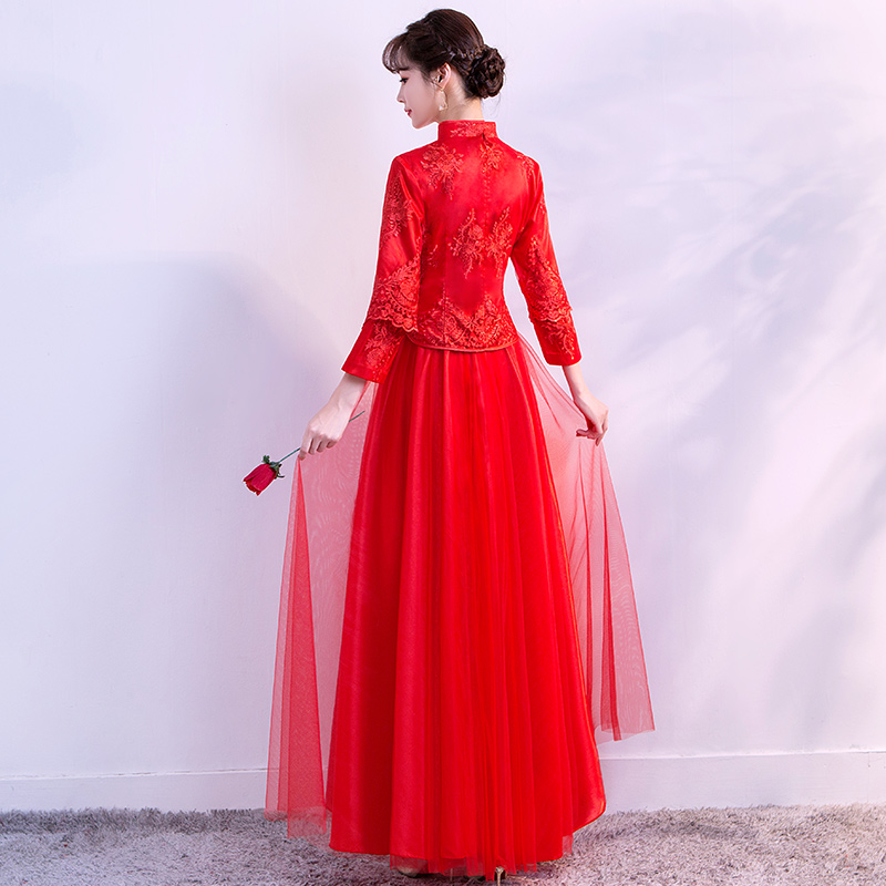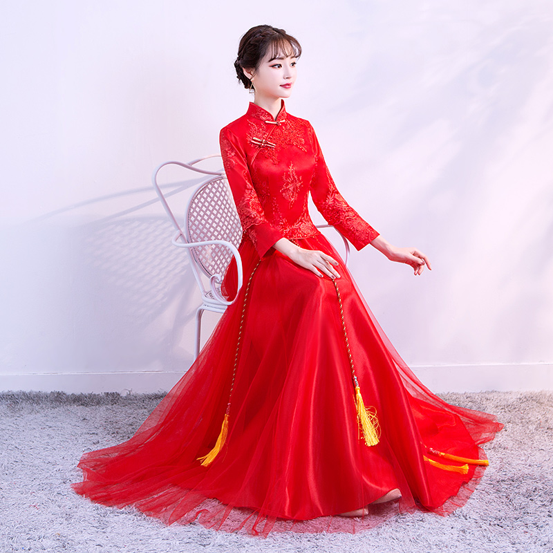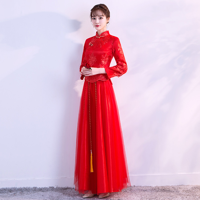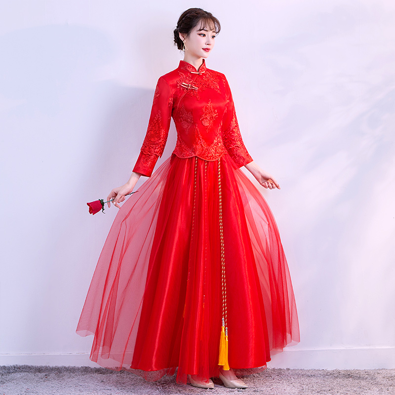 • 紅色敬酒服新娘秋冬季中式婚紗禮服長款長袖秀禾服新款結(jié)婚禮服女