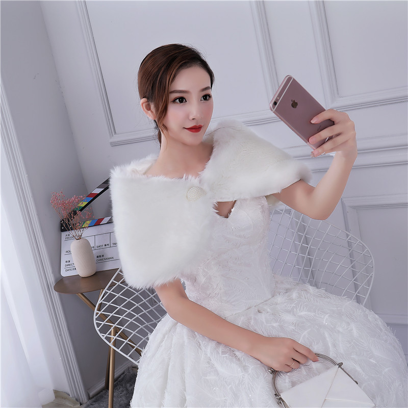 • 2017冬季新款白色新娘婚紗毛披肩加厚保暖大碼禮服披肩