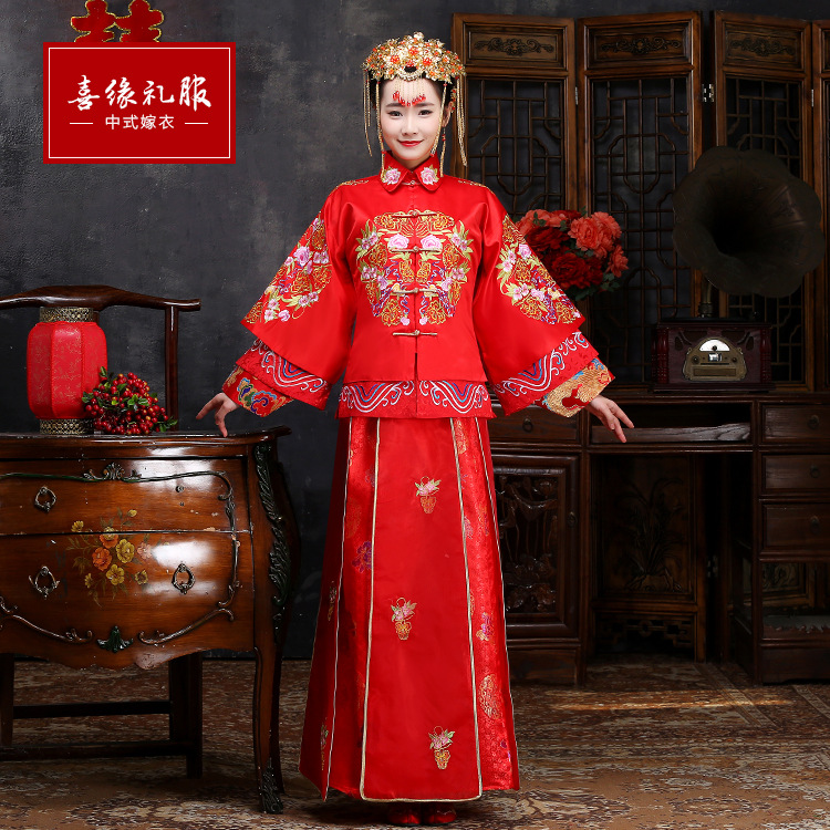 中式新娘秀禾服 新款結婚嫁衣喜服紅色敬酒服秀
