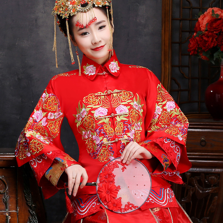 • 中式新娘秀禾服 新款結婚嫁衣喜服紅色敬酒服秀