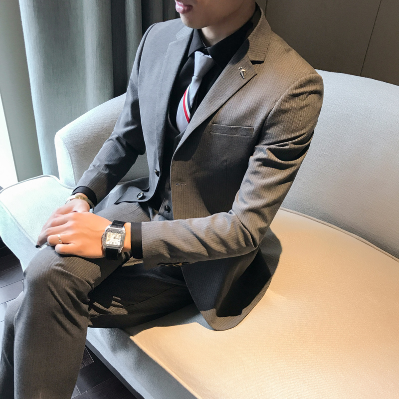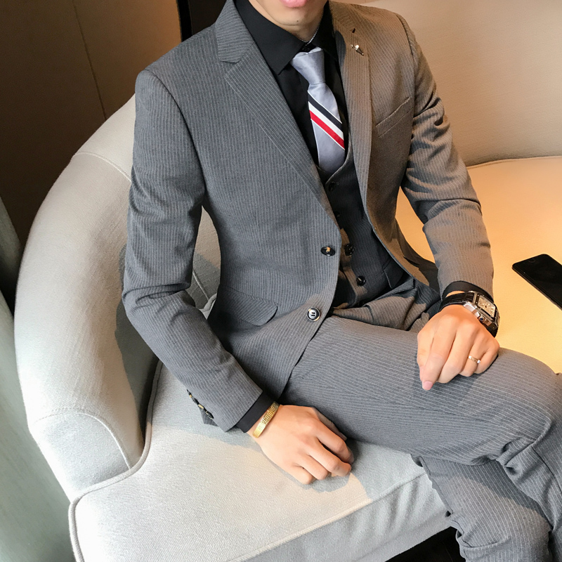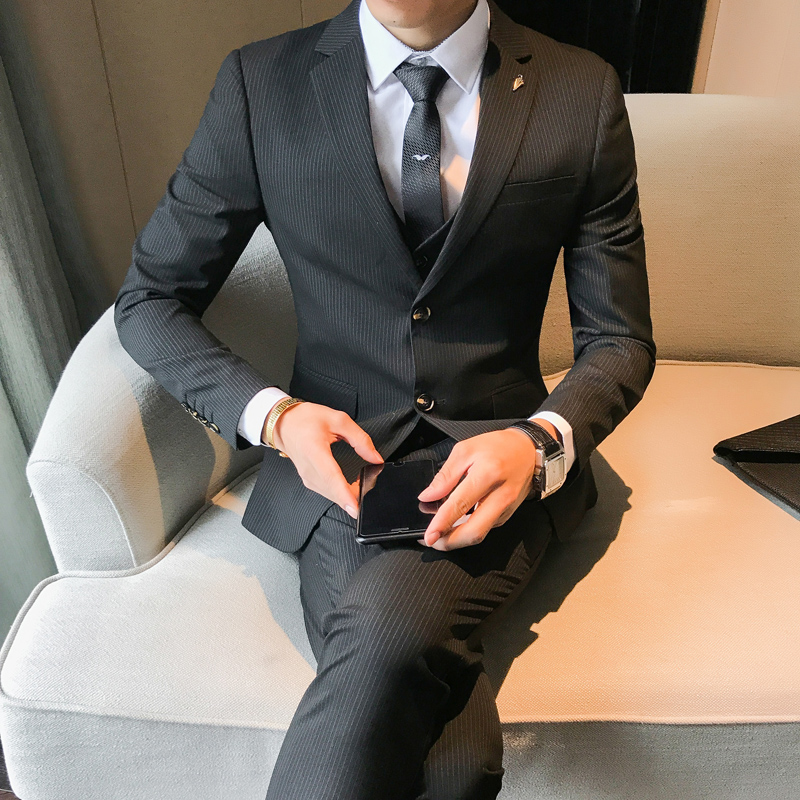 • 男士西服3套裝修身版男款商務(wù)正裝新郎結(jié)婚禮服職業(yè)裝三件套