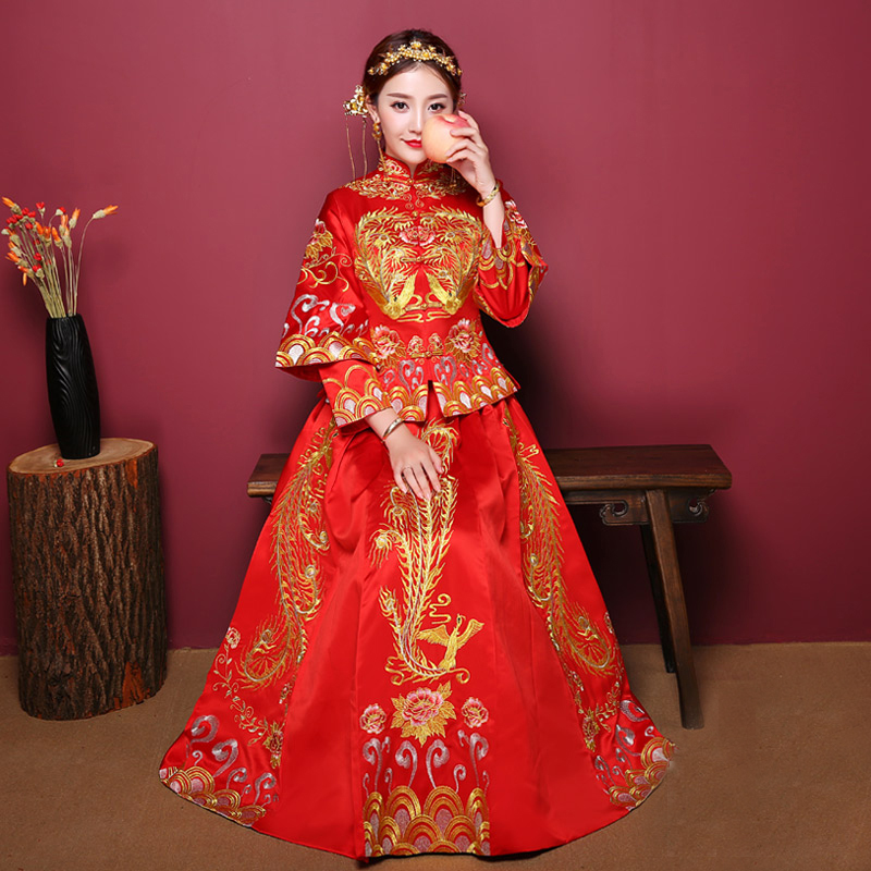 春節(jié)不打烊新款結(jié)婚敬酒服新娘禮服中式婚紗古裝嫁衣秀和服繡