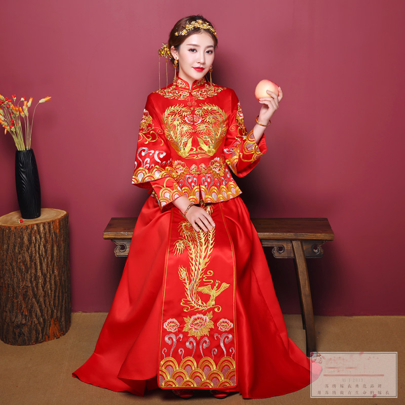 • 春節(jié)不打烊新款結(jié)婚敬酒服新娘禮服中式婚紗古裝嫁衣秀和服繡
