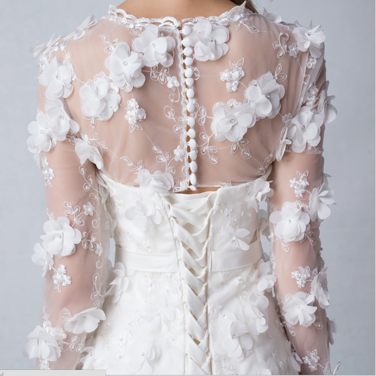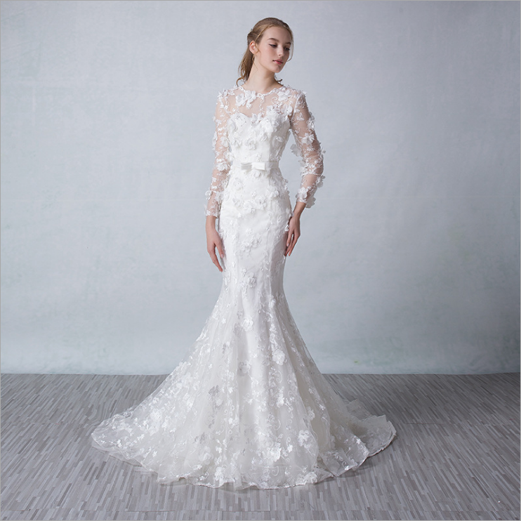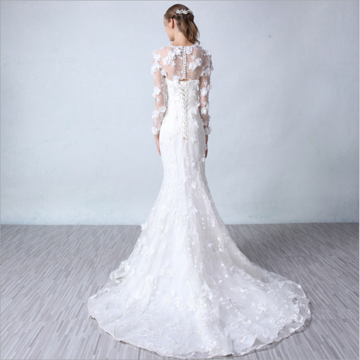 春夏魚尾婚紗 2016新款新娘結(jié)婚長袖小拖尾雙肩抹胸大碼禮服
