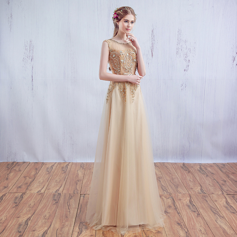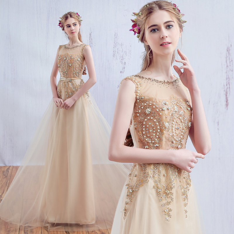 晚禮服金色2016夏季新款時(shí)尚新娘結(jié)婚敬酒服迎賓回門(mén)禮服長(zhǎng)款
