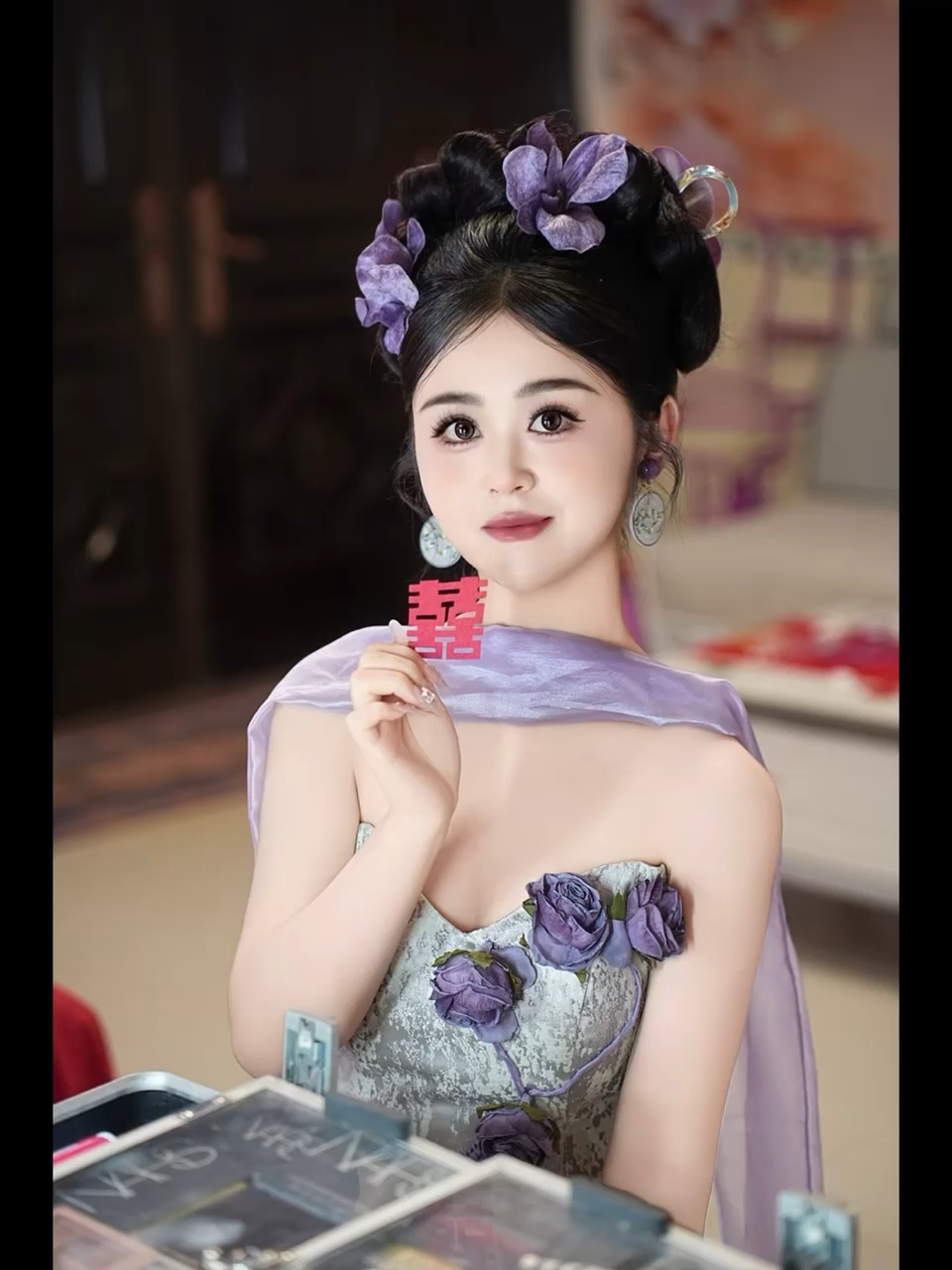 新中式國風紫色晨袍