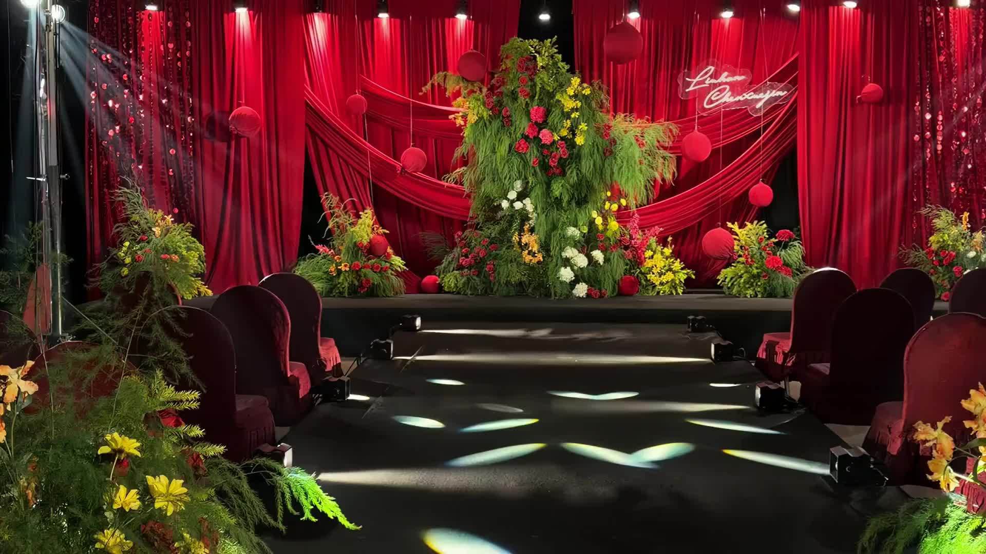 紅綠色圣誕風婚禮布置
