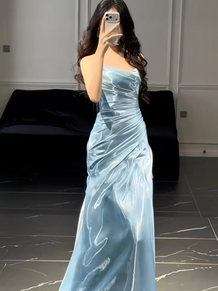 藍(lán)色抹胸裙+美到室息!宴會必備!
