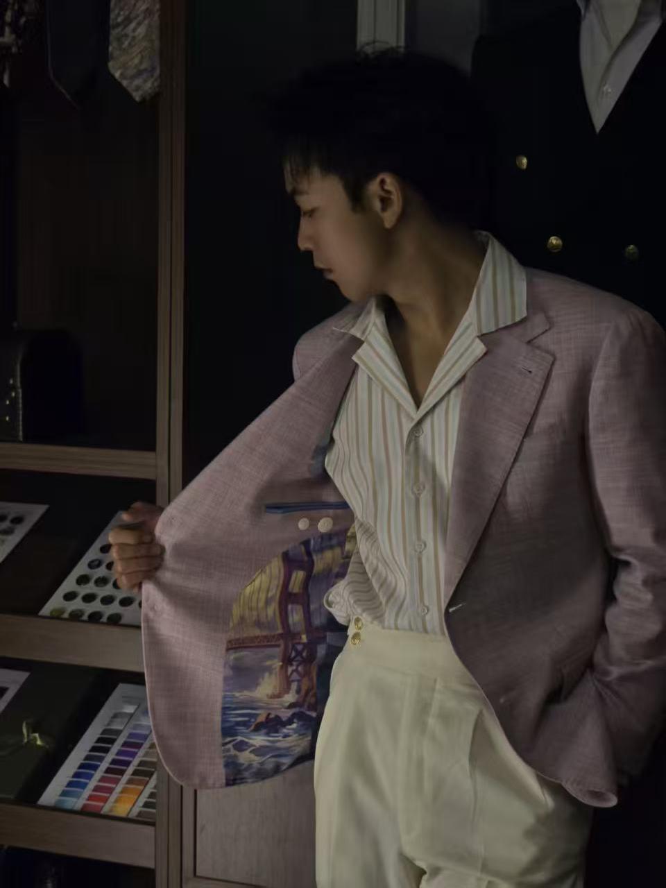意式平駁領(lǐng)單排扣套裝